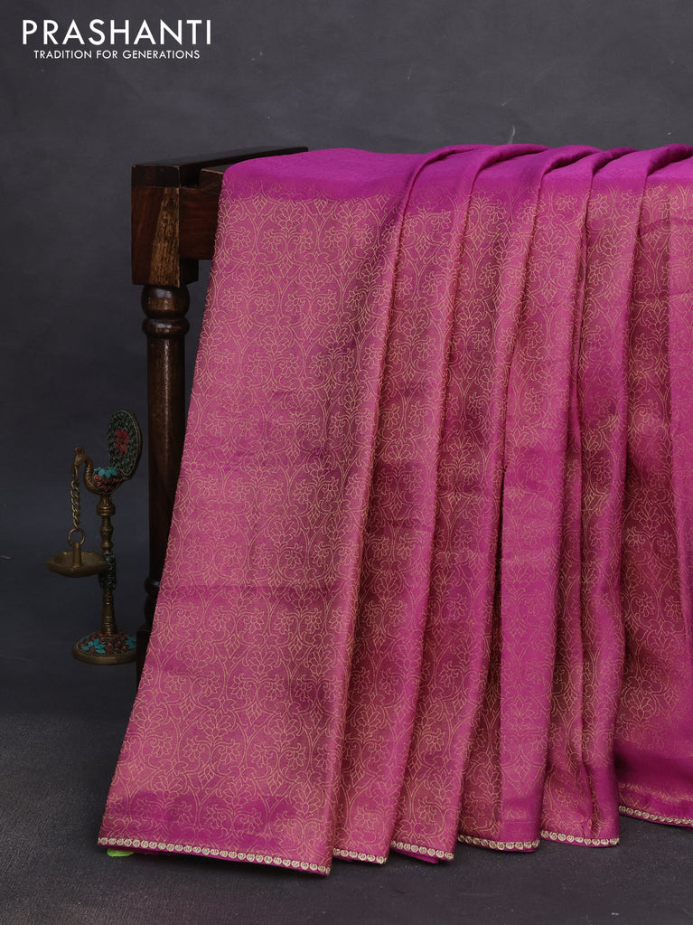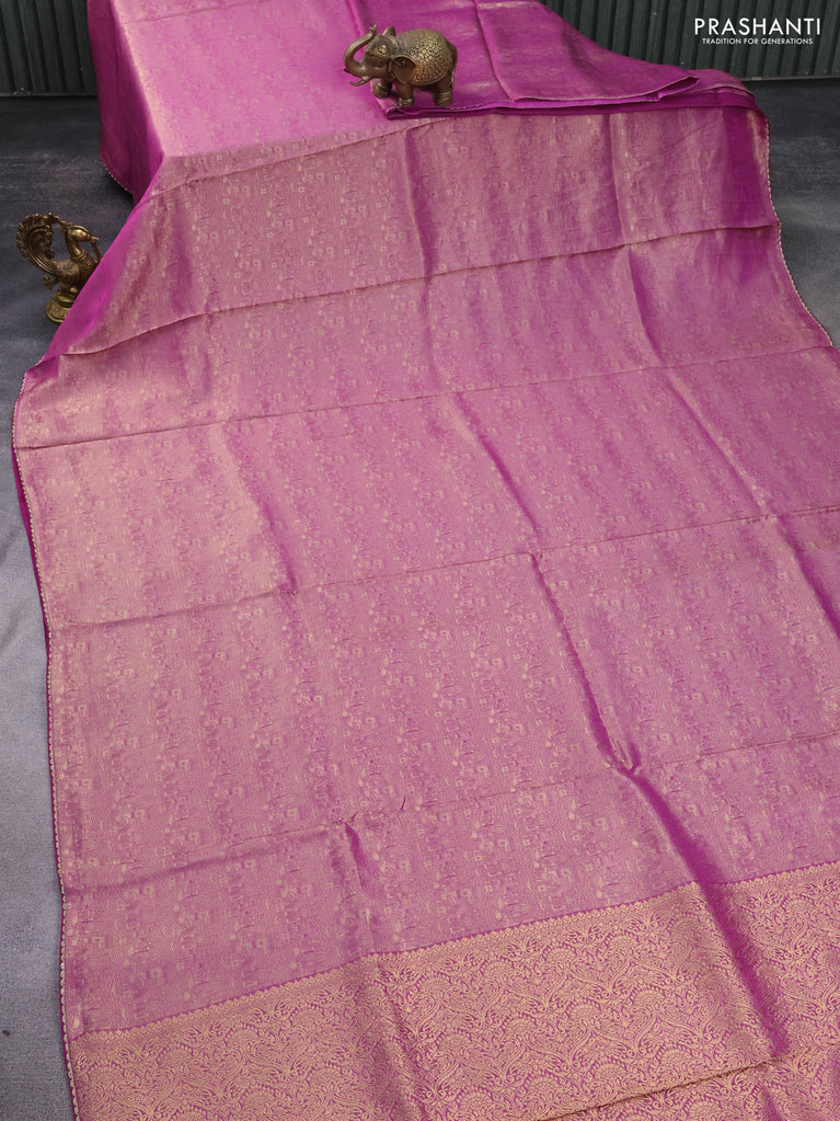 Banarasi semi crepe saree purple with allover zari woven brocade weaves and lace work border