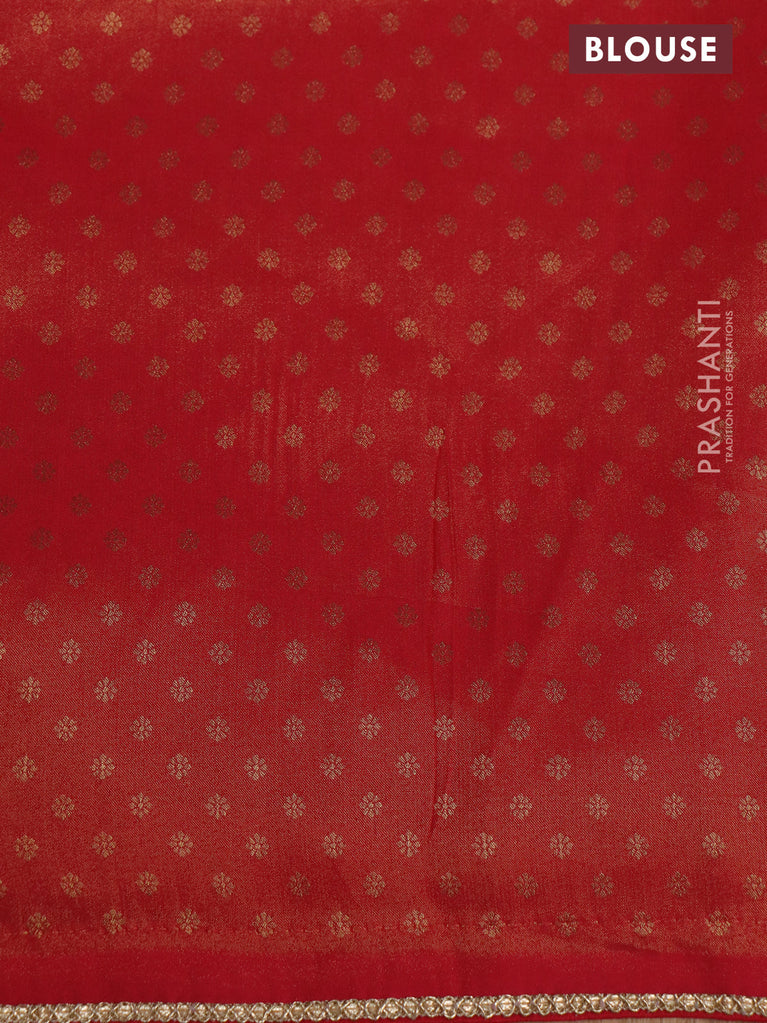 Banarasi semi crepe saree red with allover zari woven brocade weaves and lace work border