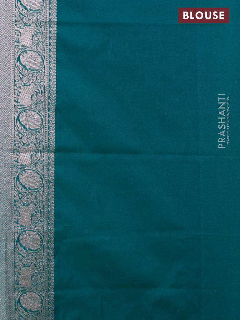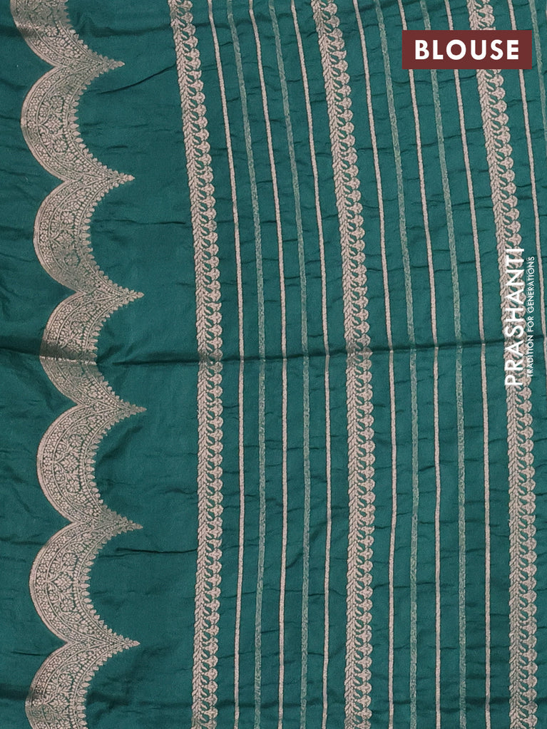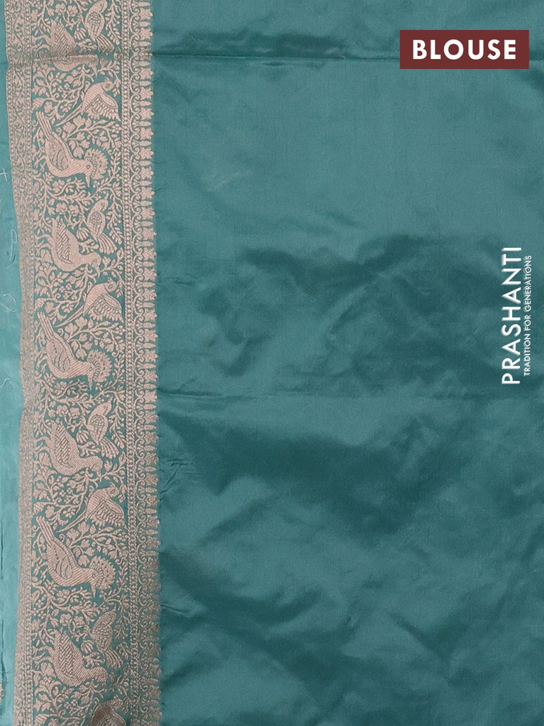 Banarasi semi katan saree teal green with silver & gold zari weaves and zari woven border