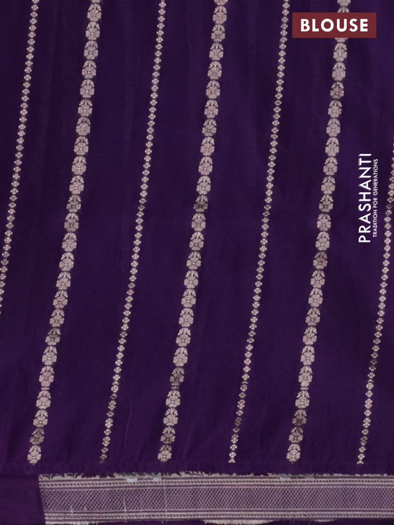 Banarasi semi katan silk saree violet with allover silver & gold zari weaves and zari woven border