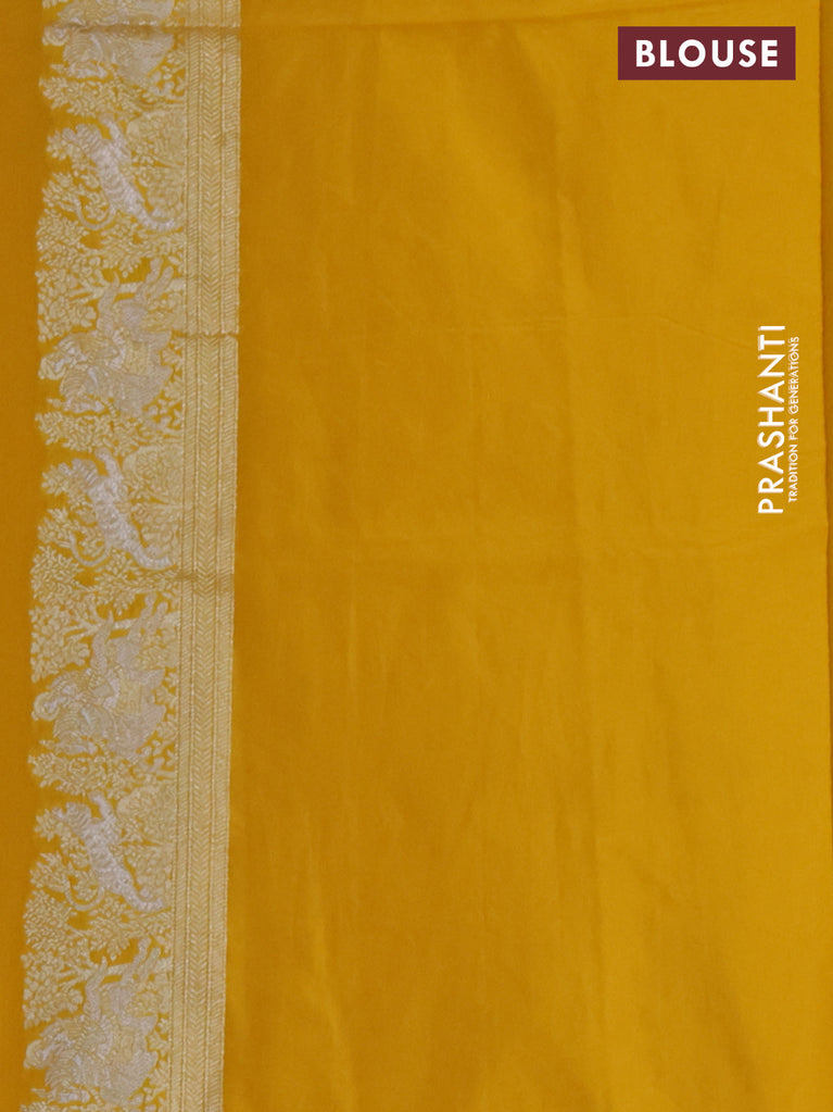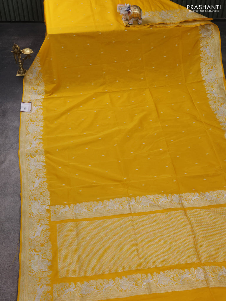 Banarasi semi katan silk saree yellow with silver zari woven buttas and rich zari woven border