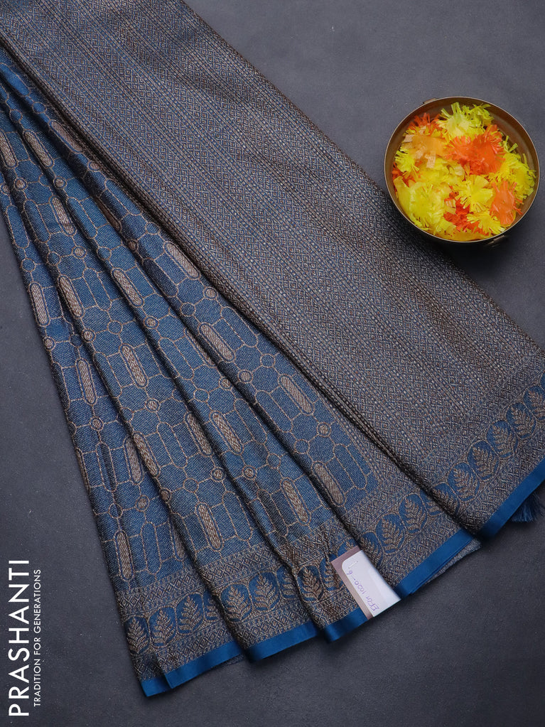Banarasi semi silk saree cs blue with allover thread & zari weaves and woven border
