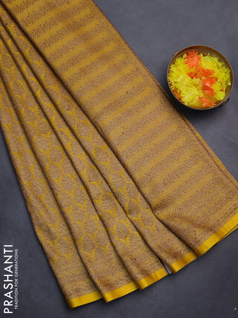 Banarasi semi silk saree yellow with allover thread & zari weaves and woven border