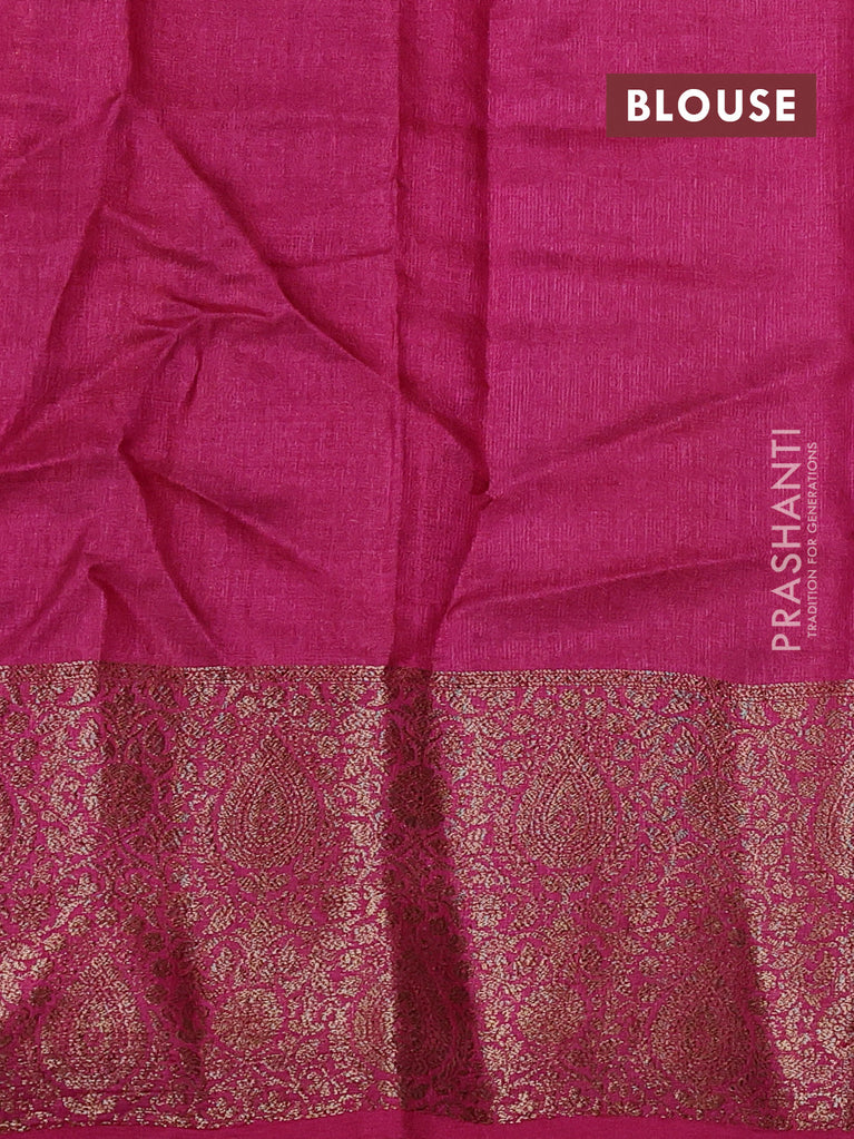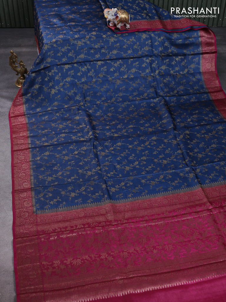 Banarasi tussar silk saree peacock blue and magenta pink with allover thread & zari weaves and woven border
