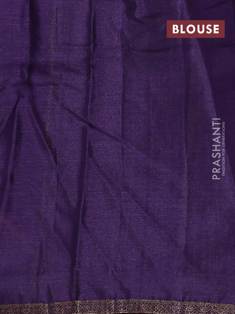 Banarasi tussar silk saree orange and violet with thread & zari woven buttas and temple design woven border
