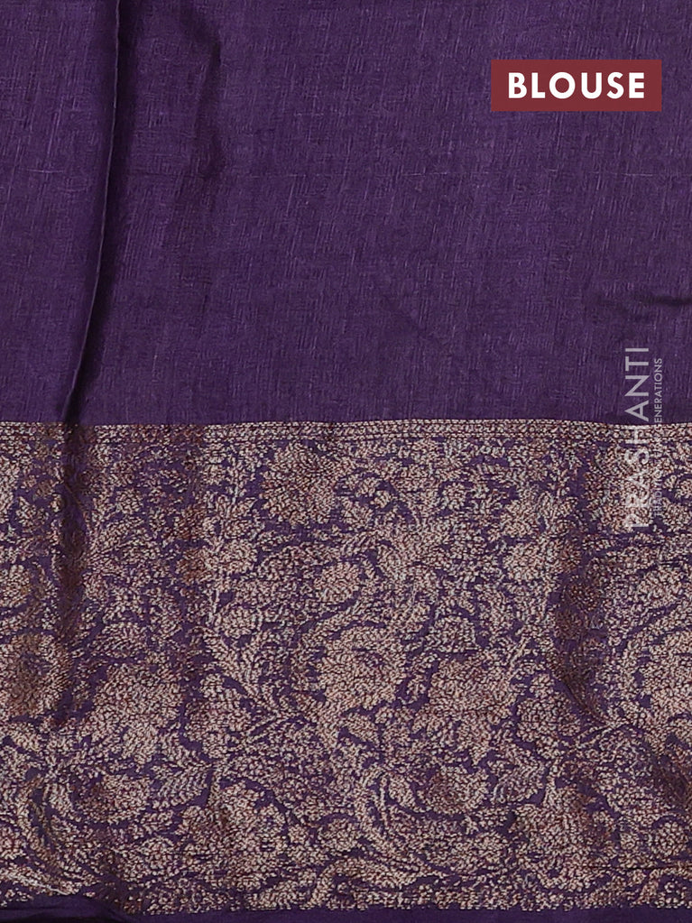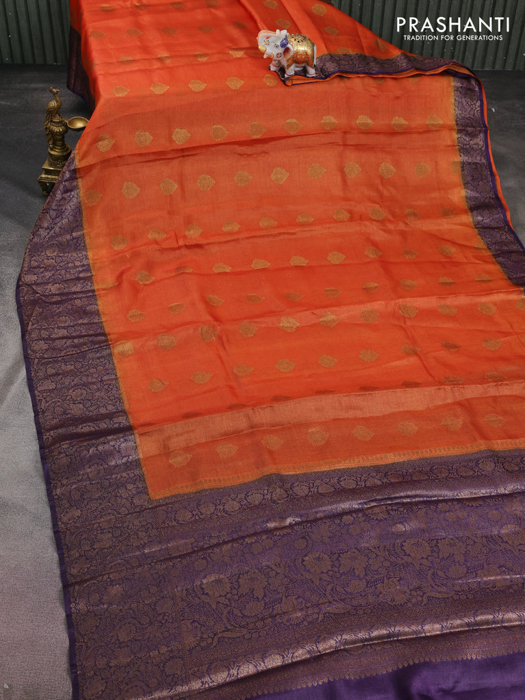 Banarasi tussar silk saree orange and purple with thread & zari woven buttas and woven border