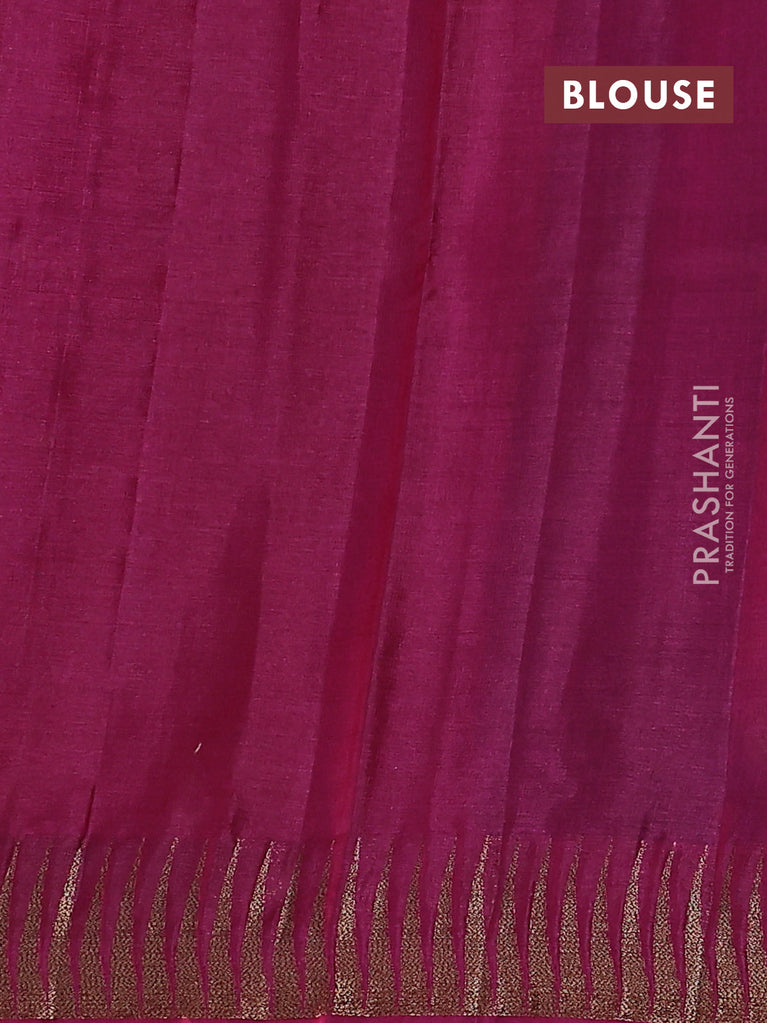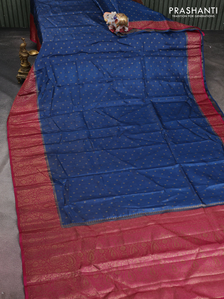 Banarasi tussar silk saree peacock blue and magenta pink with allover thread & zari woven buttas and woven border