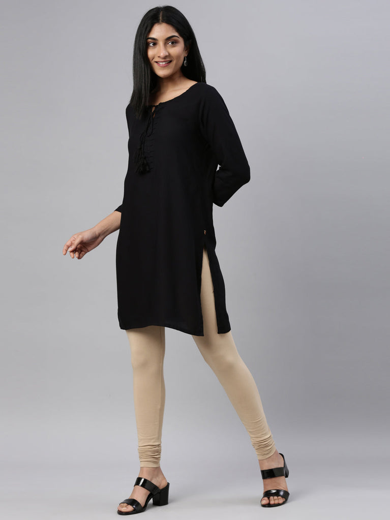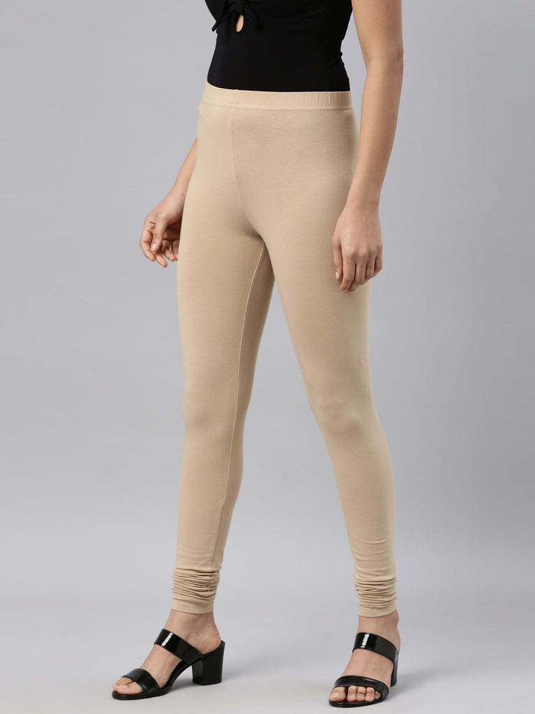 Go chic with a pair of Beige Solid Churidar Leggings. Made from high quality cotton, it has a elasticised waistband & gathers at the hemline.