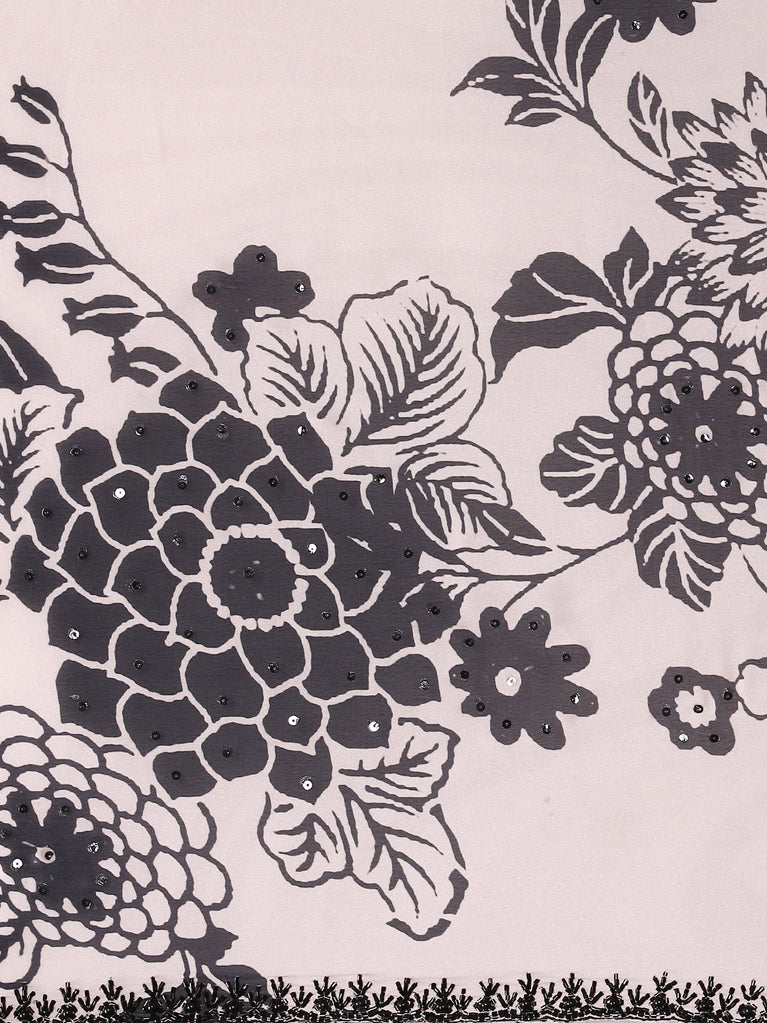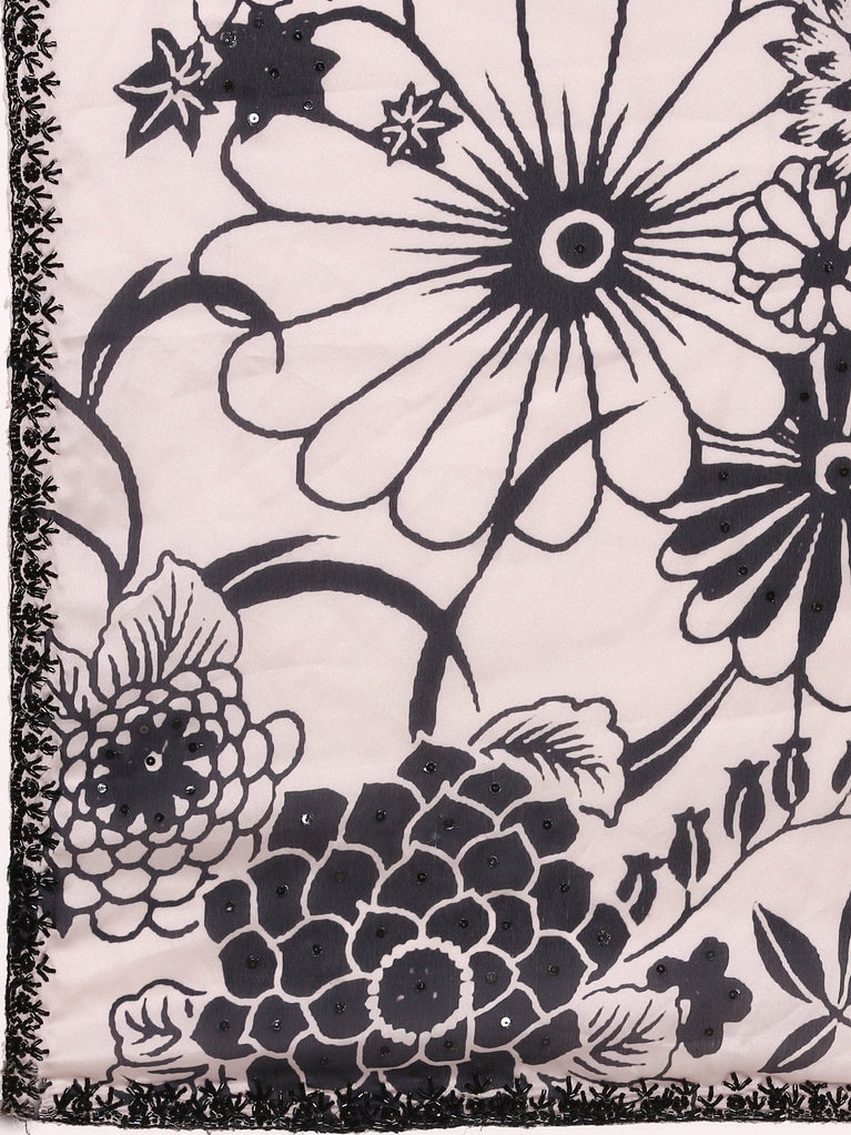 A timeless masterpiece! This beige floral embroidered Anarkali kurta set for women exudes elegance and sophistication. The kurta features intricate floral embroidery with pearl detailing along the neckline and borders, paired with a heavily flared silhouette that glides gracefully. The churidar offers a snug fit, while the lightweight embroidered dupatta with scalloped edges completes the ensemble. Perfect for weddings and festive occasions, this set is crafted to make you shine effortlessly.