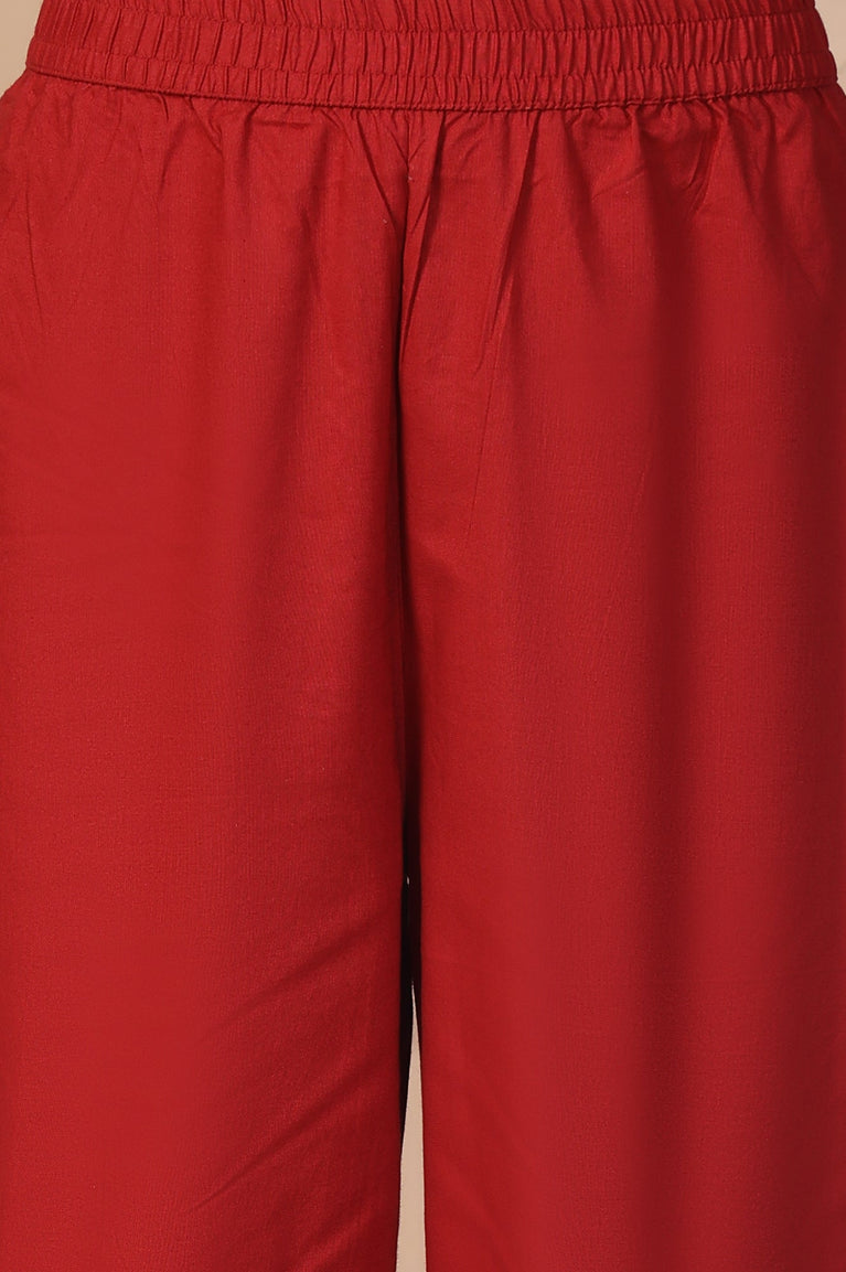 Woven poetry in every thread, this kurta set for women redefines timeless elegance for the modern wardrobe. The ensemble is anchored by a stunning Golden Sand kurta, meticulously crafted from a lustrous jacquard fabric that glides with a subtle, celebratory sheen. Delicate, shimmering buti motifs are woven throughout its A-line silhouette, creating a rich tapestry of texture that catches the light beautifully. You’ll adore the thoughtful details in this exquisite kurti set, from the sophisticated mandarin collar with its neat front slit to the practical three-quarter sleeves. The straight hemline is beautifully grounded by a wide, contrasting border in a deep Crimson Ruby, a vibrant detail that’s mirrored perfectly on the sleeve cuffs for a cohesive look. This stunning ethnic co-ord set pairs the tunic with comfortable, solid Crimson Ruby palazzo pants, creating a bold, harmonious contrast. The true showstopper is the lavishly woven dupatta, a cascade of intricate paisley and floral artistry in matching Crimson Ruby that drapes magnificently. Opaque and impeccably styled, this complete three-piece ensemble promises grace and poise for all your festive occasions.