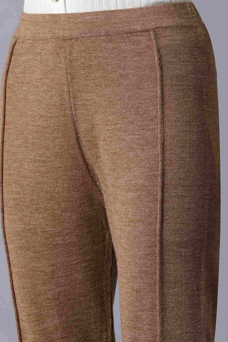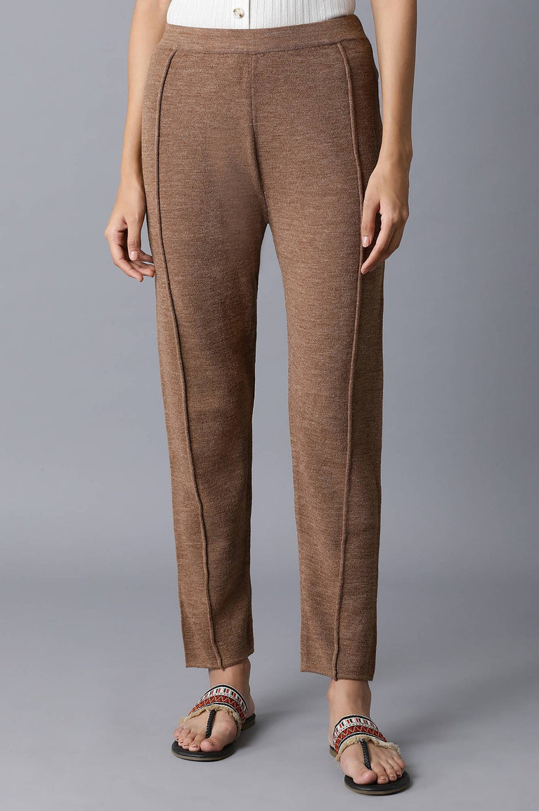 Beige parallel pants with black and beige border at hemline and partially elasticated waistband.