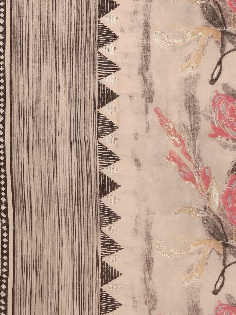 Beige Modal Silk Floral Digital Print Three Piece Set