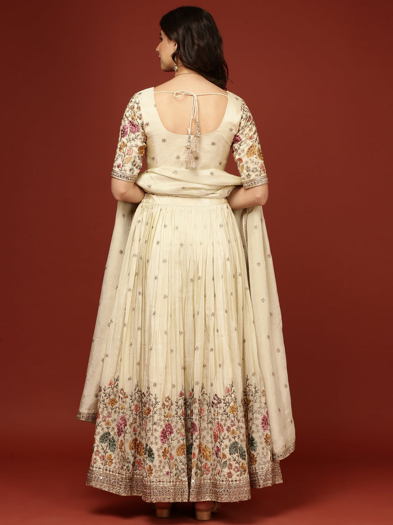 Beige Sequin Embroidered Long Jacket, Anarkali Dress and Churidar Set