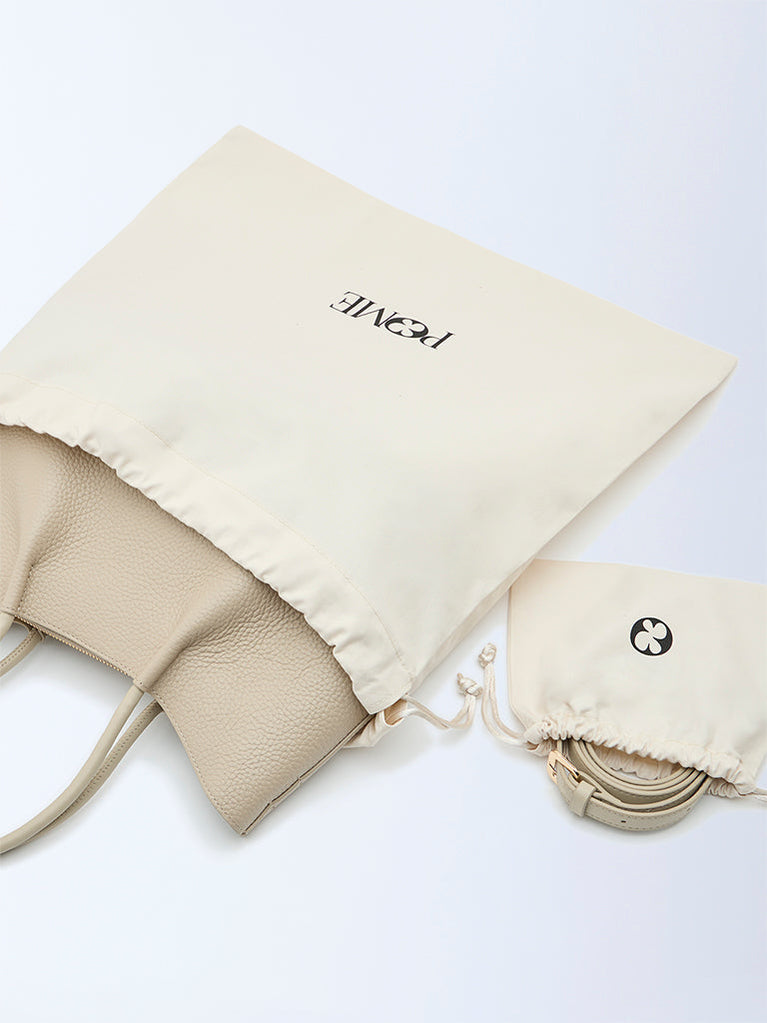 Details•Cream latte grain leather•Quality lining•Detachable shoulder strap with pouch•Internal gold zip and slip pockets•Protective gold feet