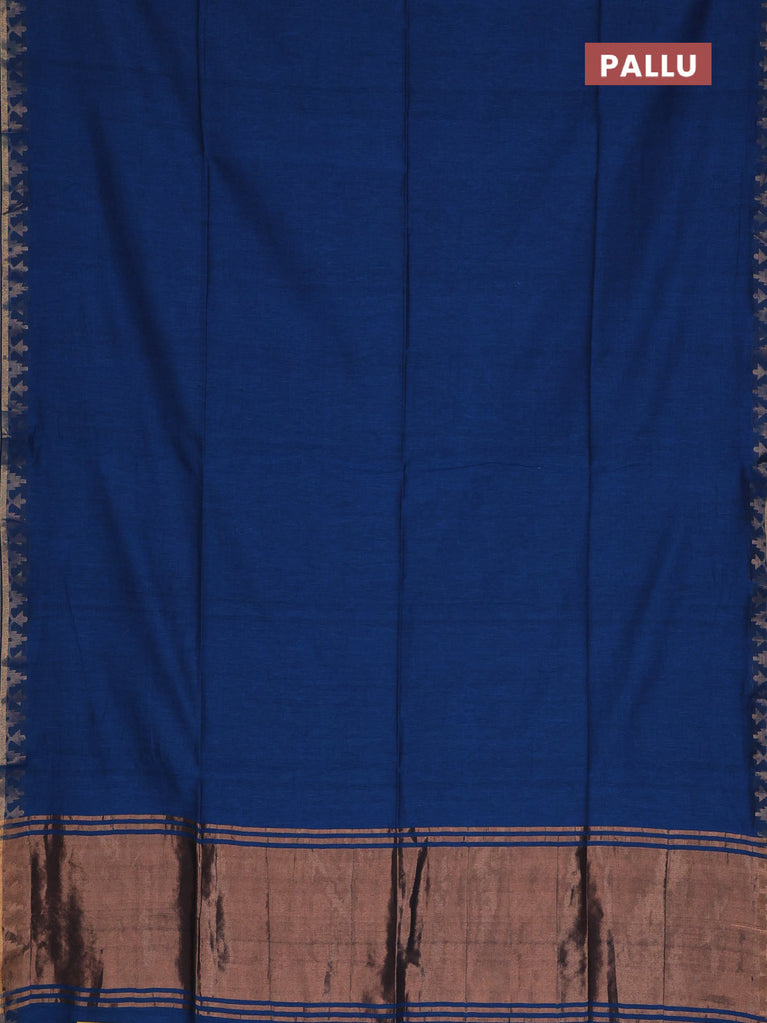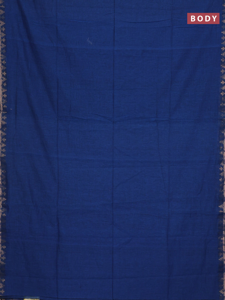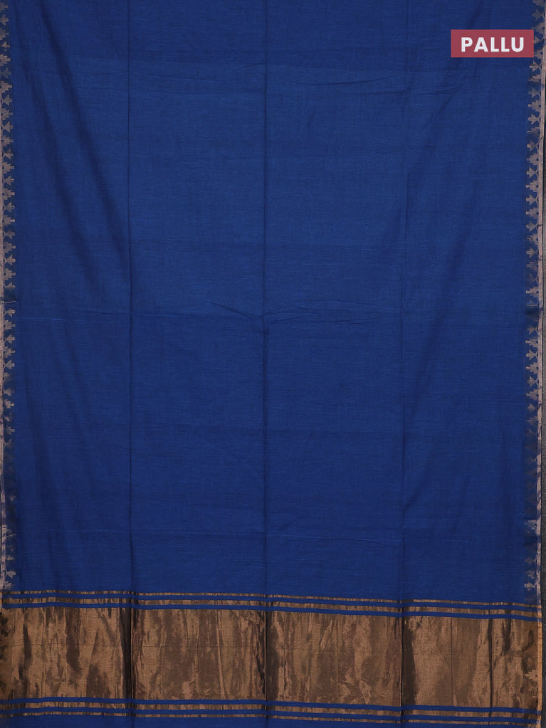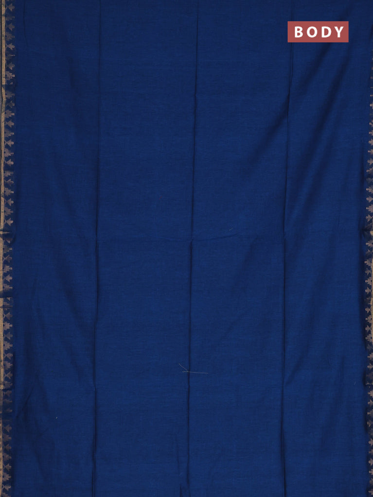 Bengal soft cotton saree cs blue with plain body and temple design zari woven border