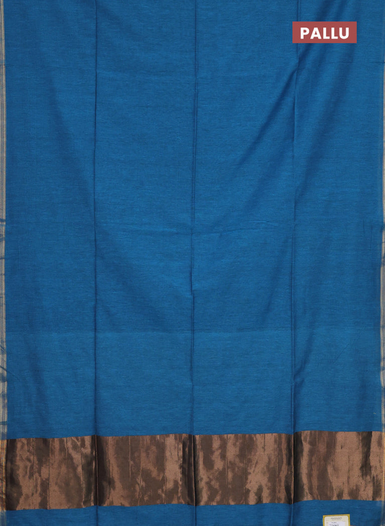 Bengal soft cotton saree cs blue with plain body and zari woven border