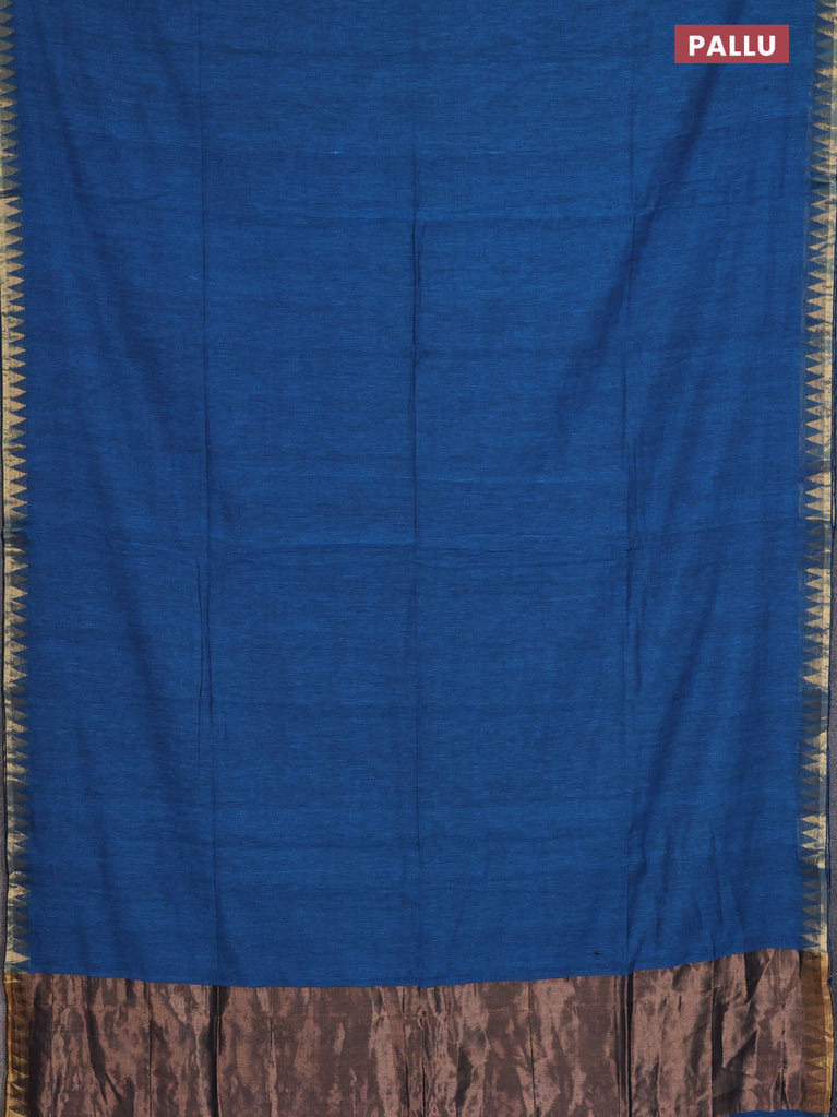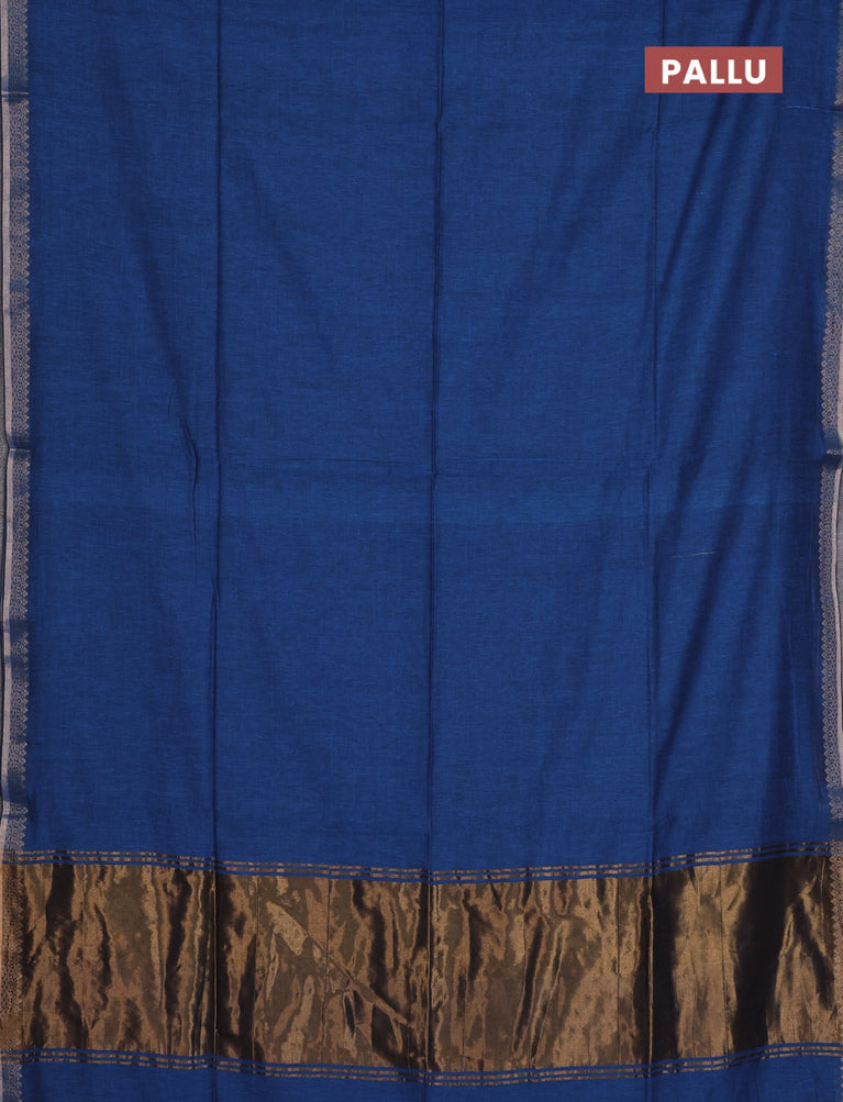 Bengal soft cotton saree peacock blue and maroon with plain body and zari woven border