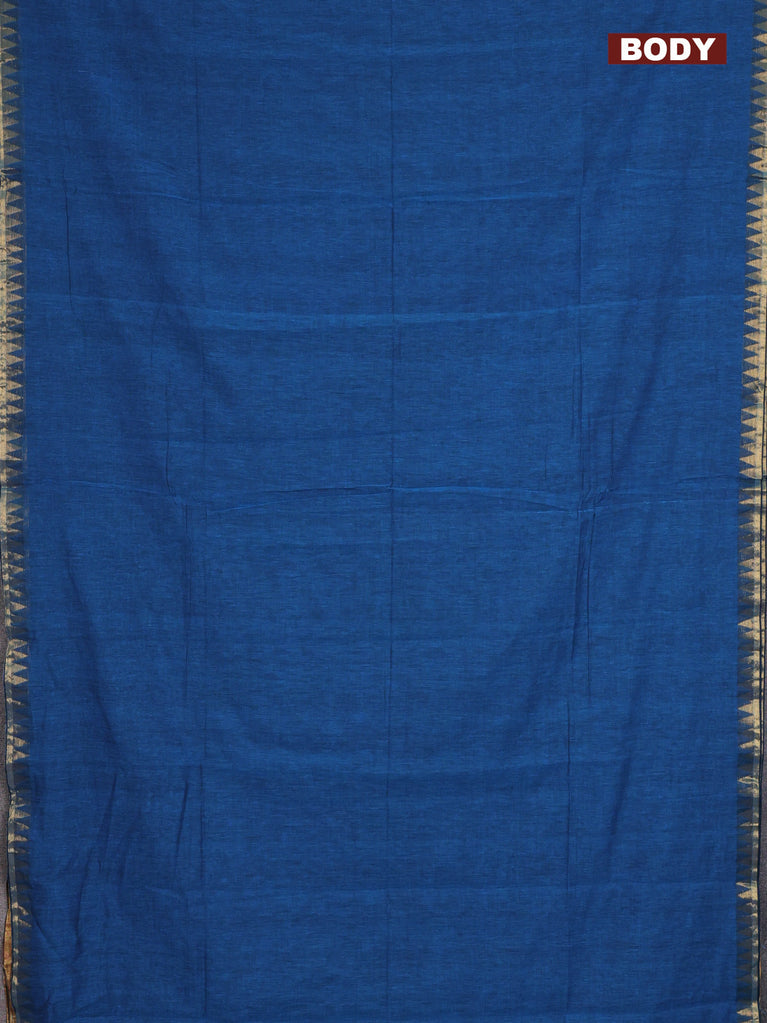 Bengal soft cotton saree peacock blue and blue with plain body and zari woven border