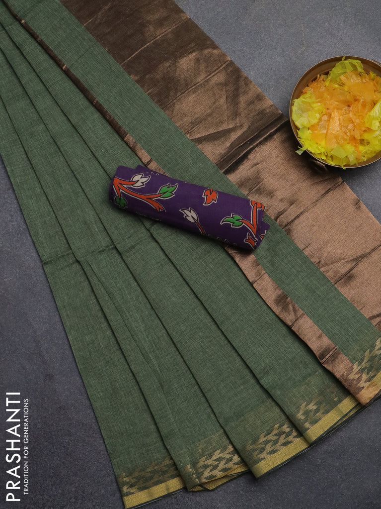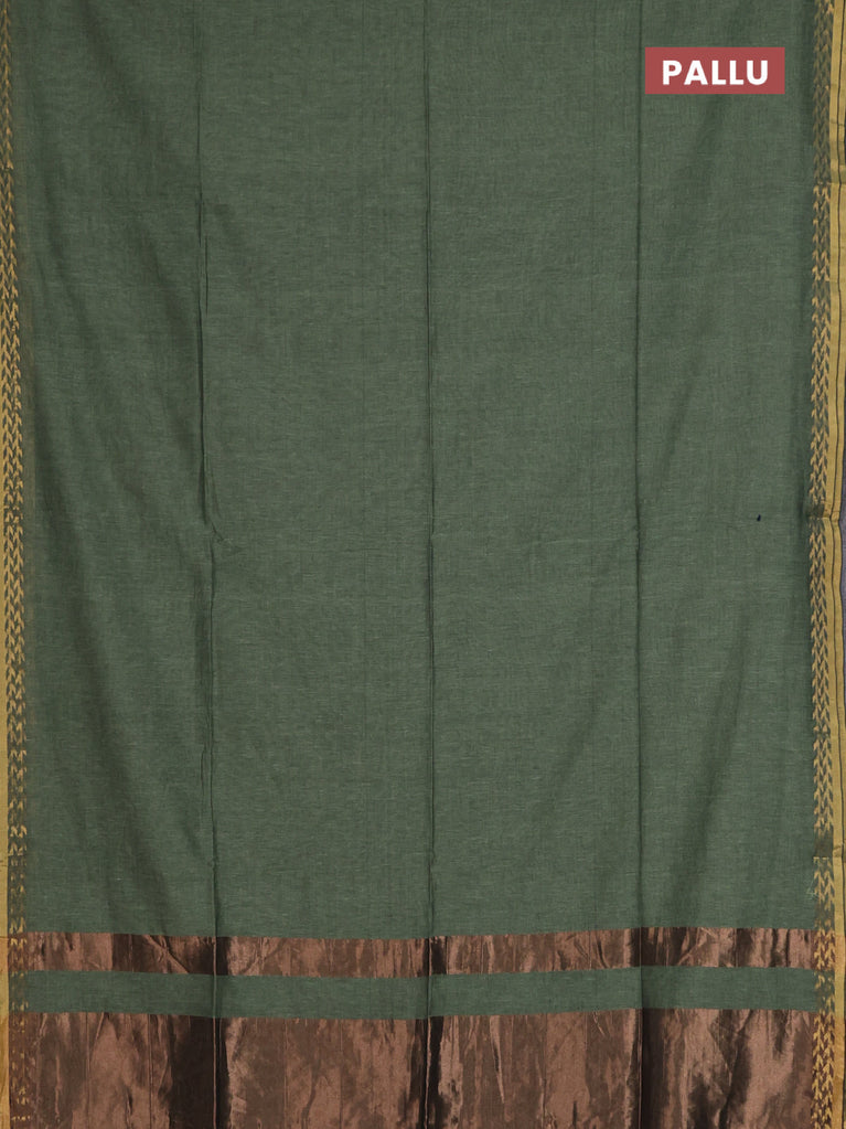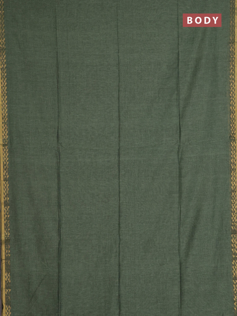 Bengal soft cotton saree peacock green with plain body and zari woven border