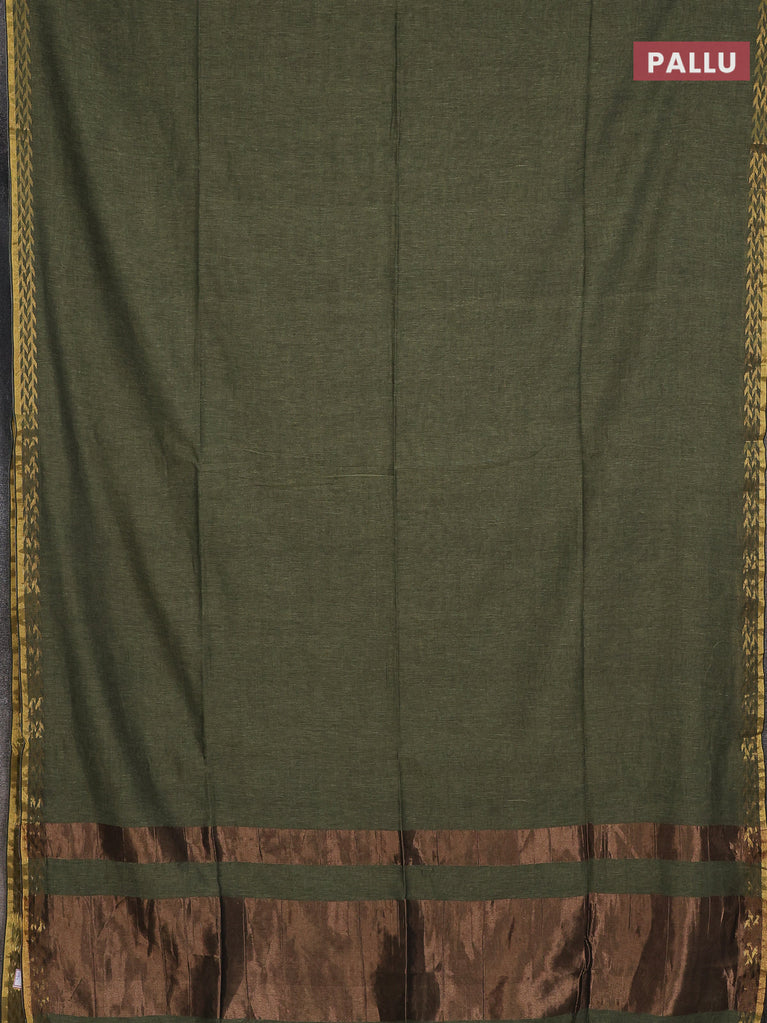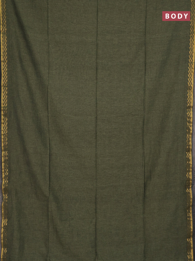 Bengal soft cotton saree peacock green and mustard yellow with plain body and zari woven border