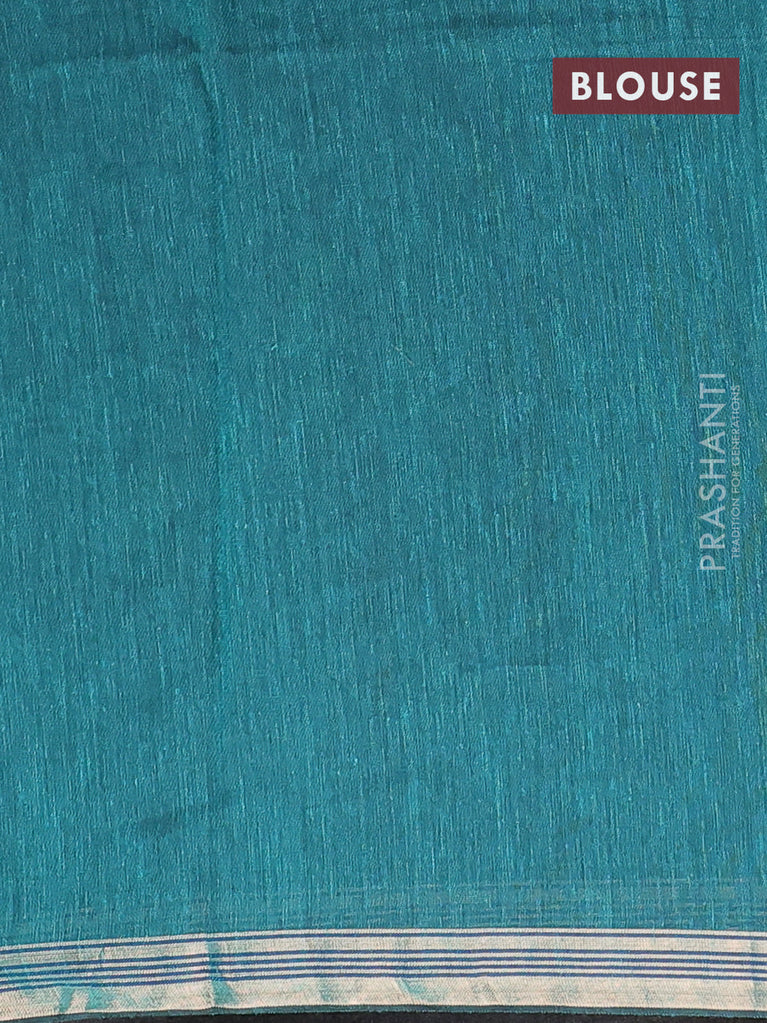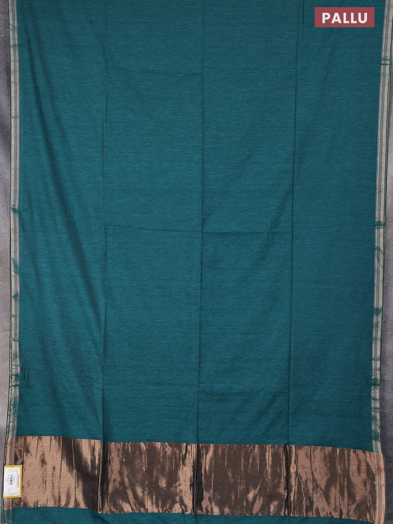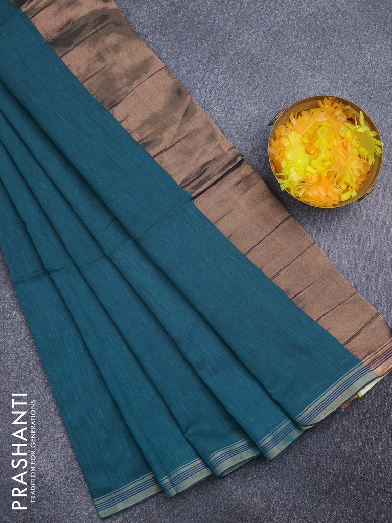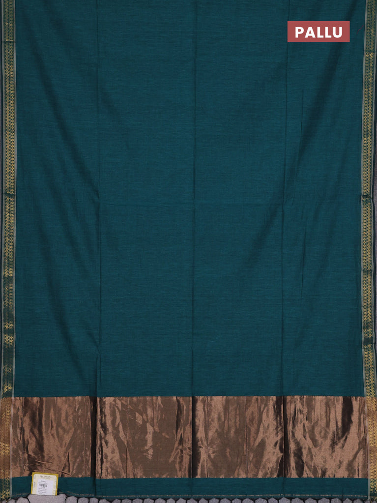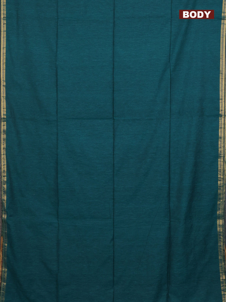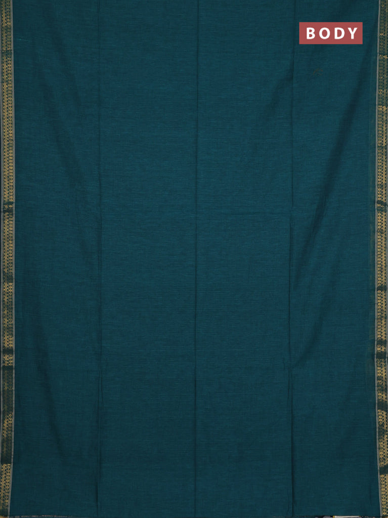 Bengal soft cotton saree teal green shade with plain body and zari woven piping border