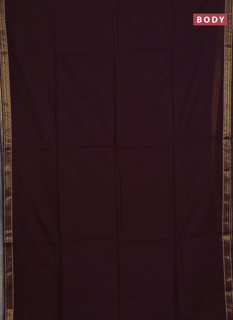 Bengal soft cotton saree wine shade and mustard yellow with plain body and zari woven border