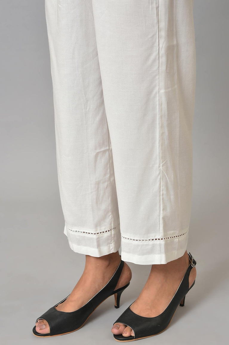 Grace And Luxury Come Together In Our Indigo Three-Piece Set. It Comprises Of A Black Dobby kurta That Features White Floral Motifs, A Straight Palazzo With A Lace Detail And A White Dobby Dupatta. Include This In Your Wardrobe To Have A Perfect Workday.