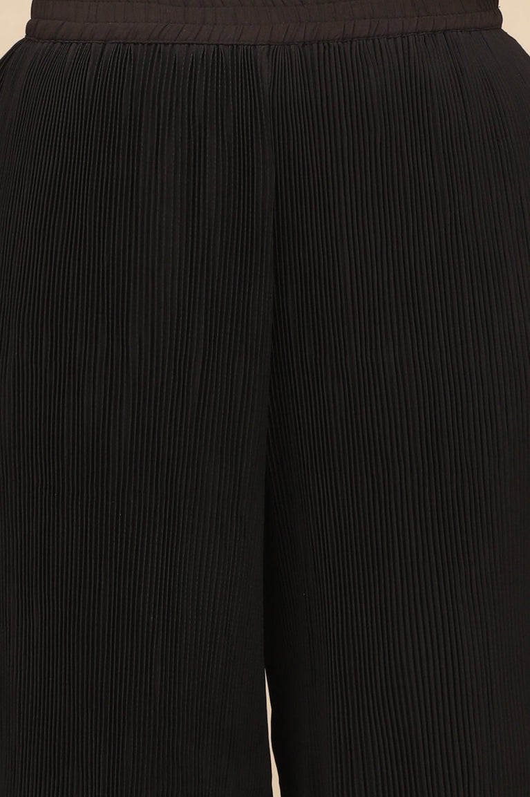 Crafted from premium black georgette, this Palazzo Set features intricate embroidery that enhances its sophisticated charm. The lightweight fabric drapes gracefully, ensuring comfort and an elegant silhouette. Ideal for formal events or festive occasions, the expertly designed set combines traditional embroidery techniques with modern tailoring for a polished, timeless look.
