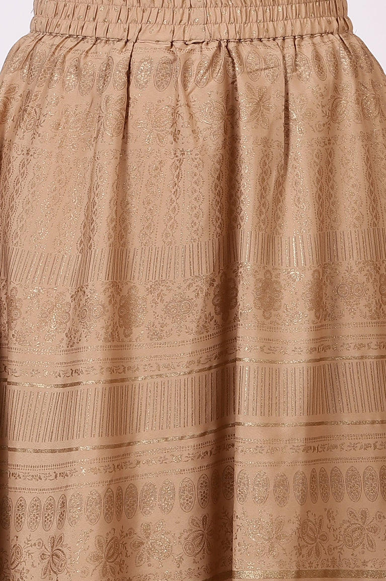 Love embroideries? Dont worry, we've got you covered. Buy this elegant embroidered kurta set that features floral motifs embellished with gold sequins and dori work on yoke. The kurta is crafted in a premium rayon fabric which falls like a dream. It comes with a mandarin collar, a placket and tie detail at the sleeves. Paired with golden printed flared circular skirt and chiffon dupatta.