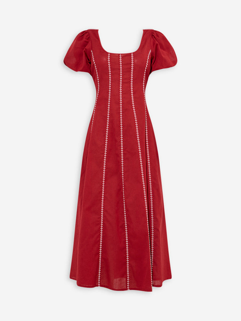 Bombay Paisley Red Embroidered Cotton A-Line Dress