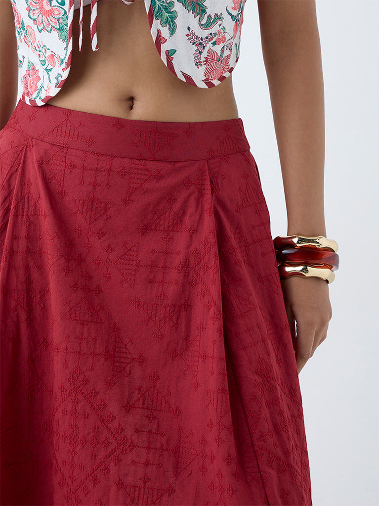 Bombay Paisley Red Embroidered High-Rise Cotton Skirt