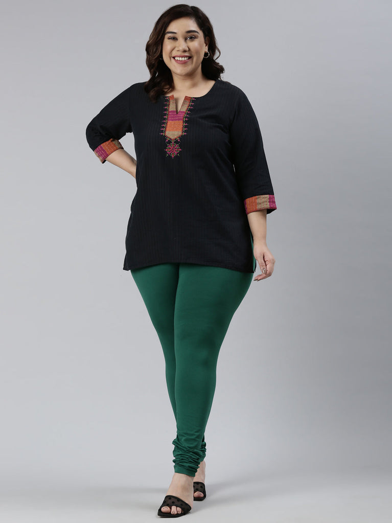 Complete any look, be it traditional or western with these Solid Bottle Green Leggings. Made from cotton & elastane, it has a elasticised waistband & has a slim fit.