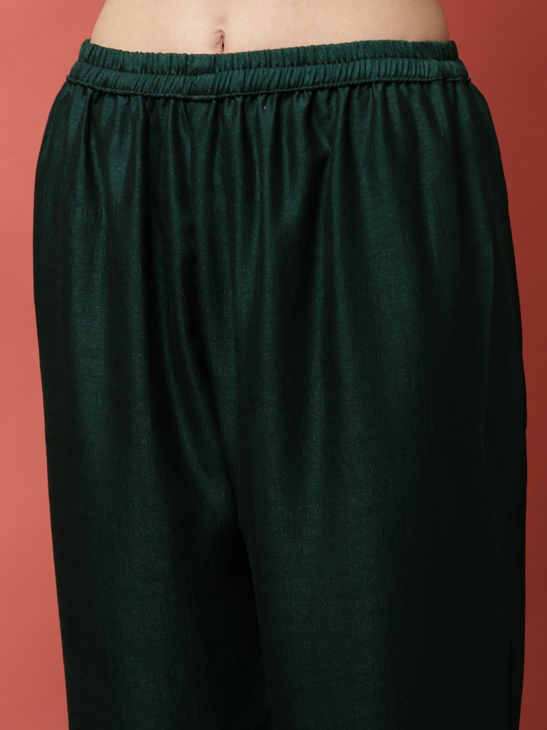 Bottle Green Solid Straight Fit Trousers With Pintuck Detail