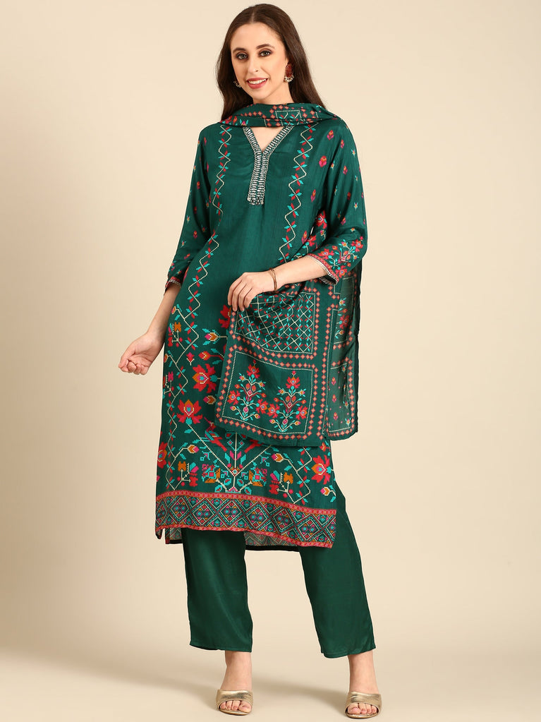 Bottle Green Vichitra Fabric Shoulder Kali With Embroiderey Duppata