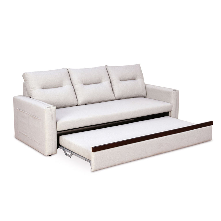 Boxton Fabric 3 Seater Sofa Cum Bed With Side Pockets (Light Brown)
