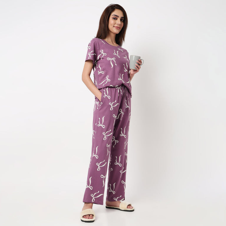 Experience ultimate comfort with our Bow Print Cotton Lounge Pyjamas, designed specifically for women. Crafted from soft cotton knit, these full-length pyjamas are perfect for lounging or a cozy night in.