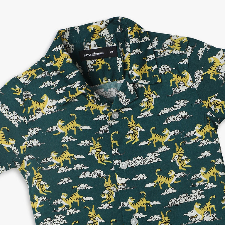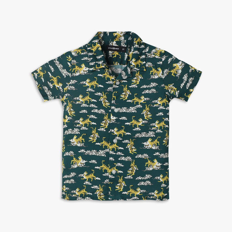 This digital rayon theme, shirt has a shirt collar and half sleeve. Made from viscose, your kid's feel comfortable wearing a product.