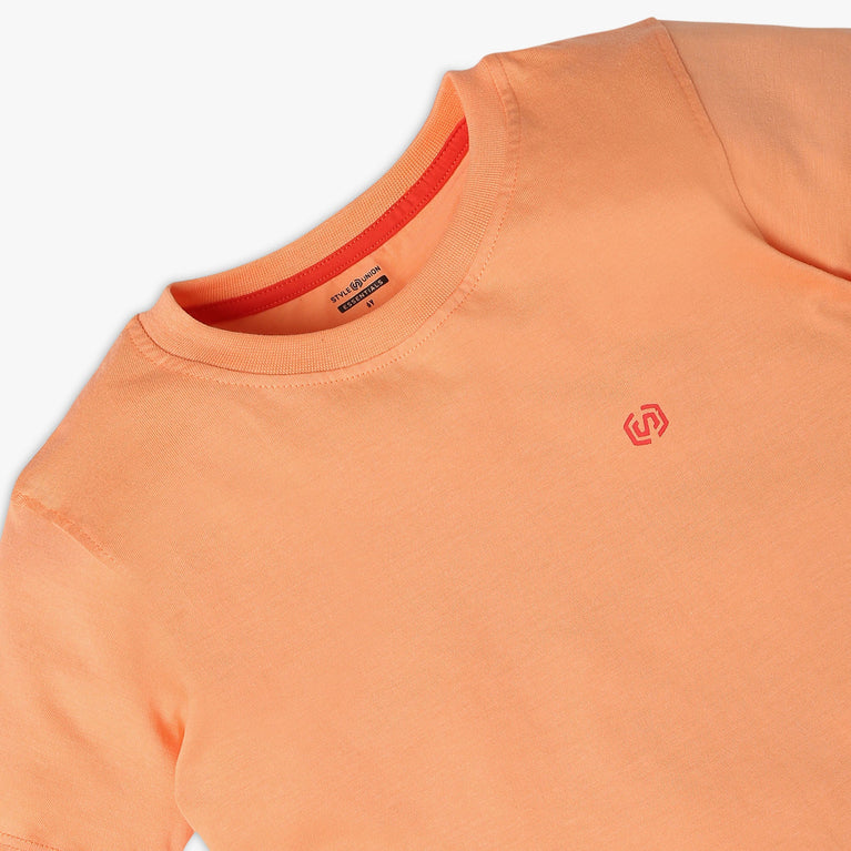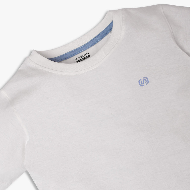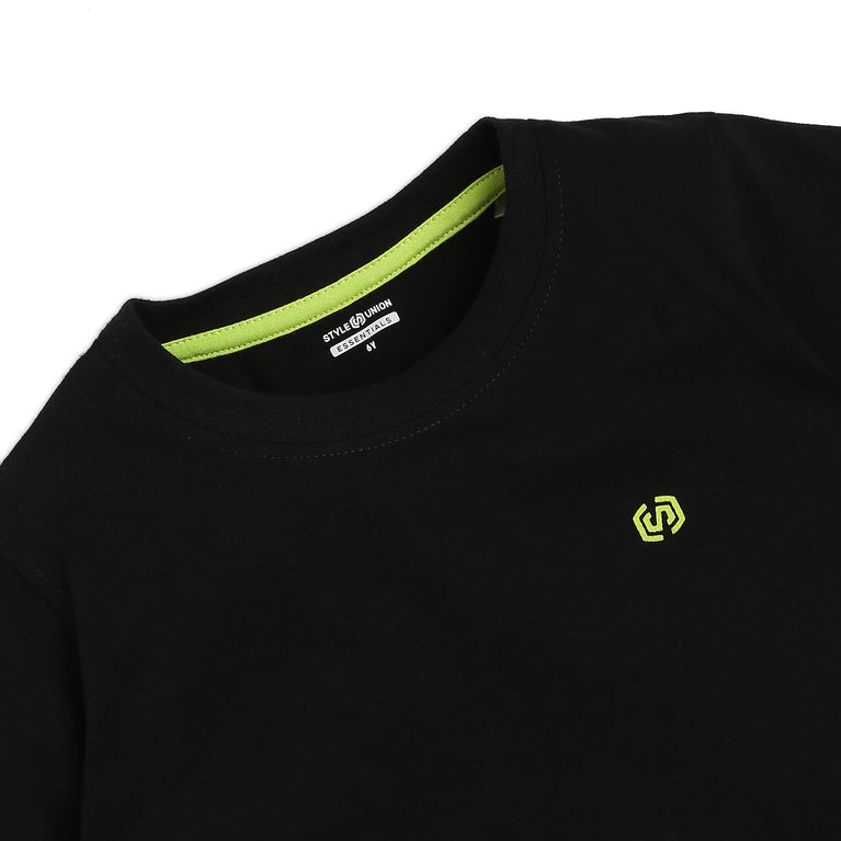 This solid pattern t-shirt has a crew neck and half sleeve. Made from cotton, your kid's feel comfortable wearing a product.