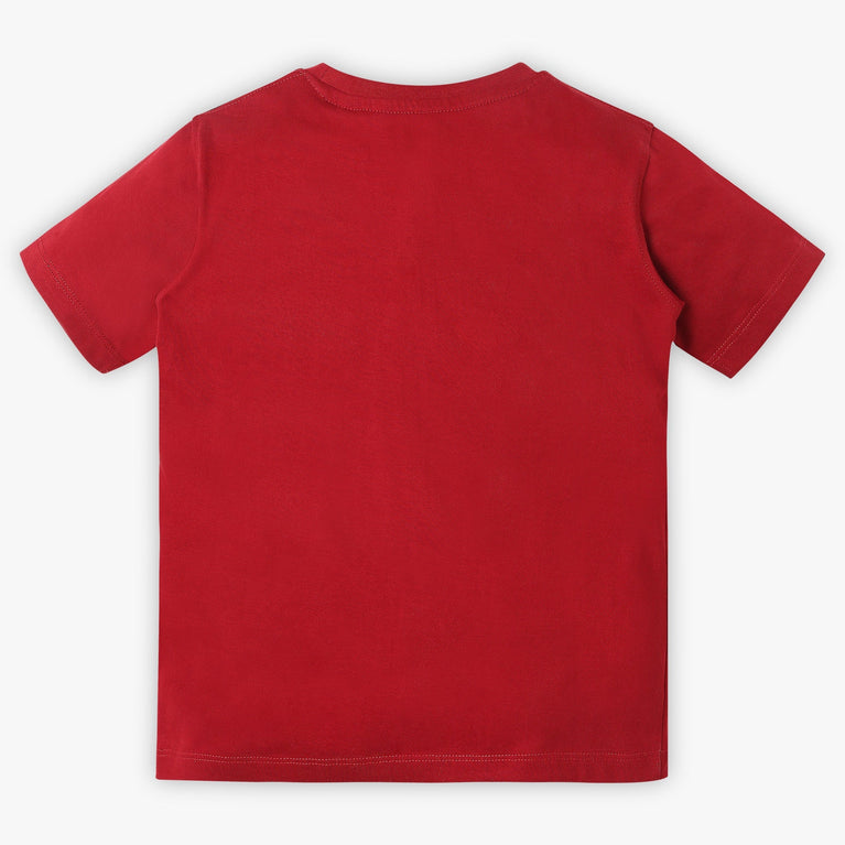 This knitted boys t shirt theme solid pattern t-shirt has a crew neck and half sleeve. Made from cotton, your kid's feel comfortable wearing a product.