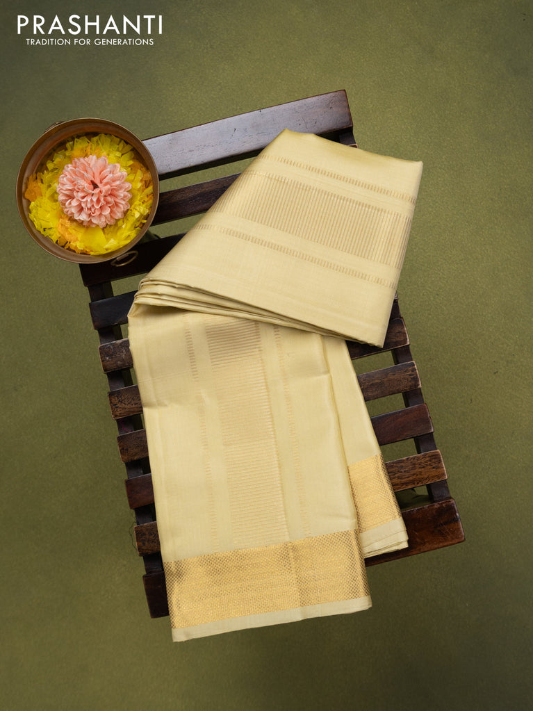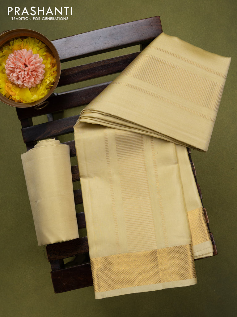 9x5 Pure silk dhoti and matching shirt bit cream with zari woven border