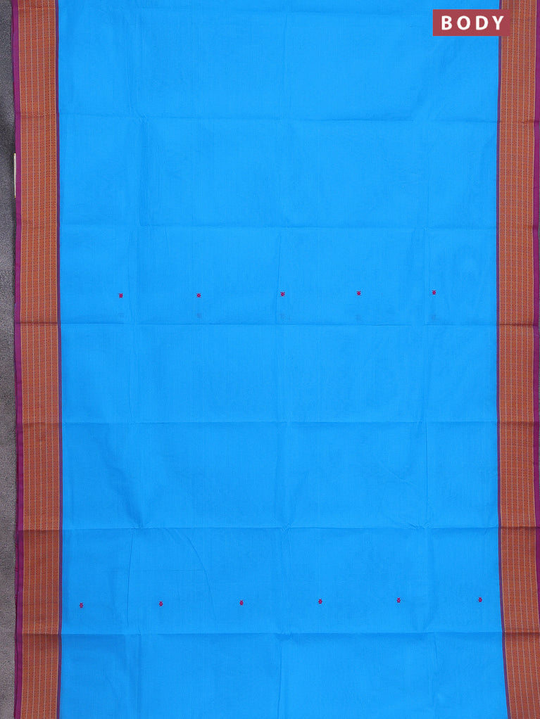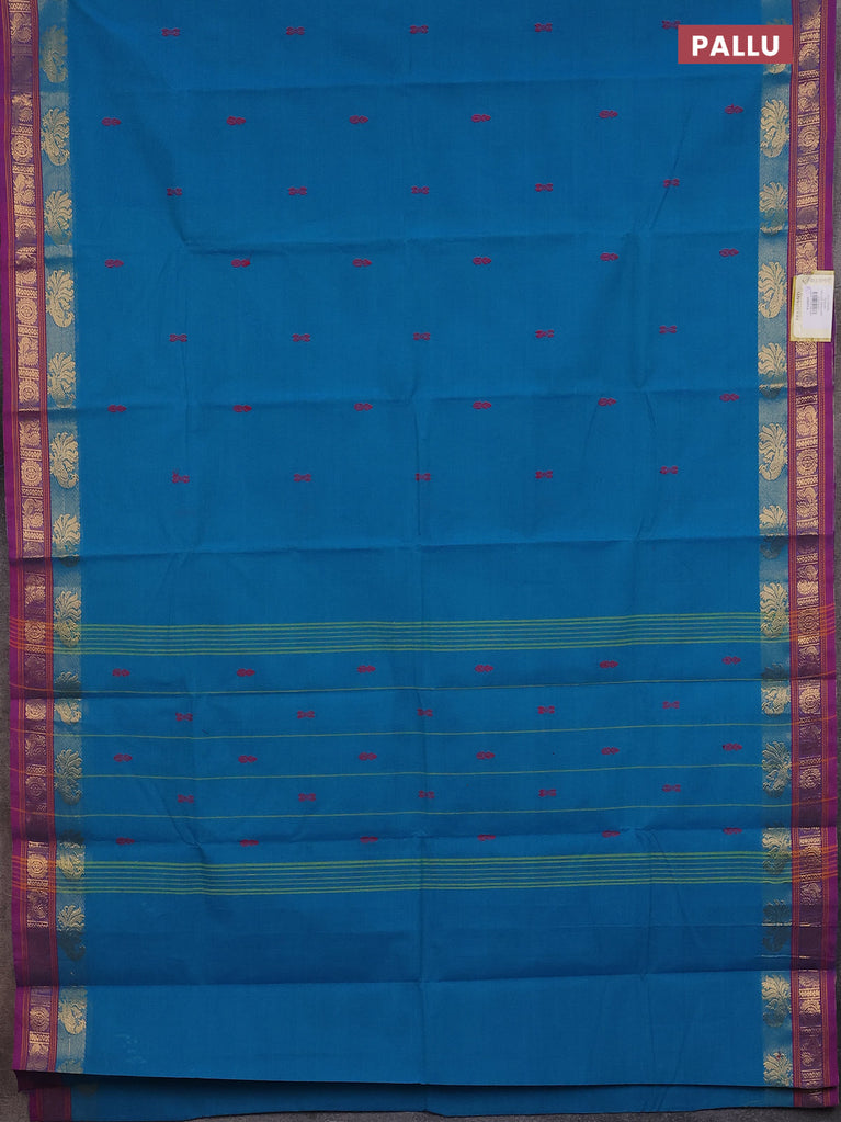 Chettinad cotton saree cs blue and purple with thread woven buttas and rettapet thread woven border