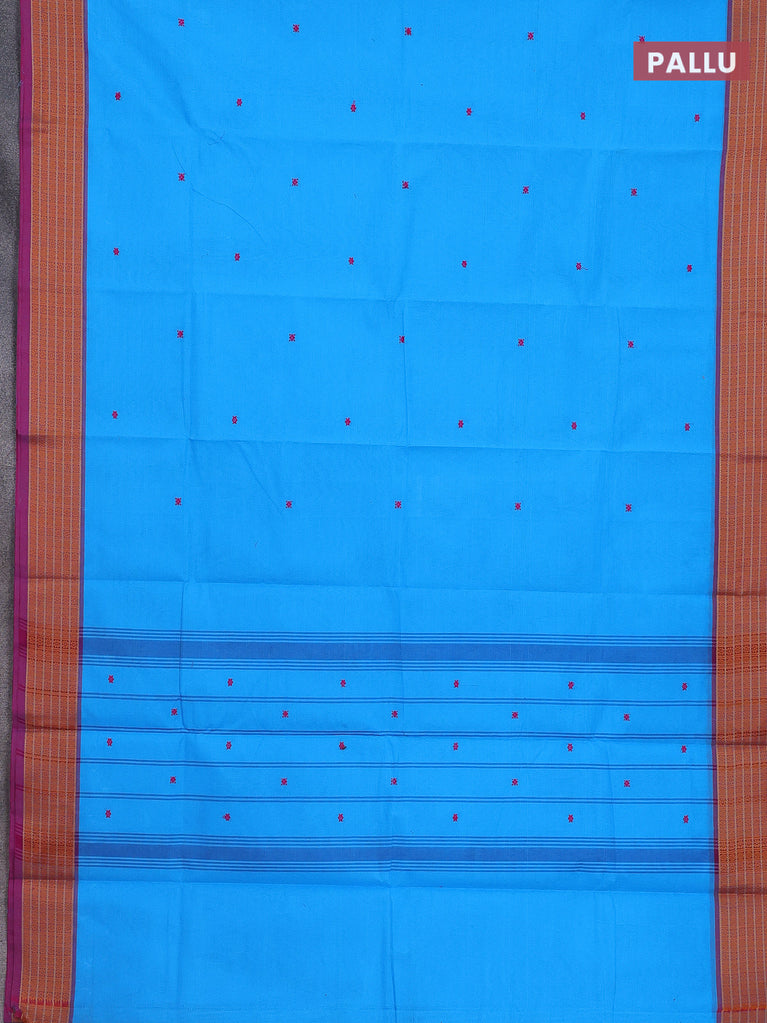 Chettinad cotton saree cs blue and dark pink with thread woven buttas and zari woven border