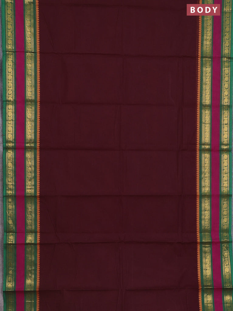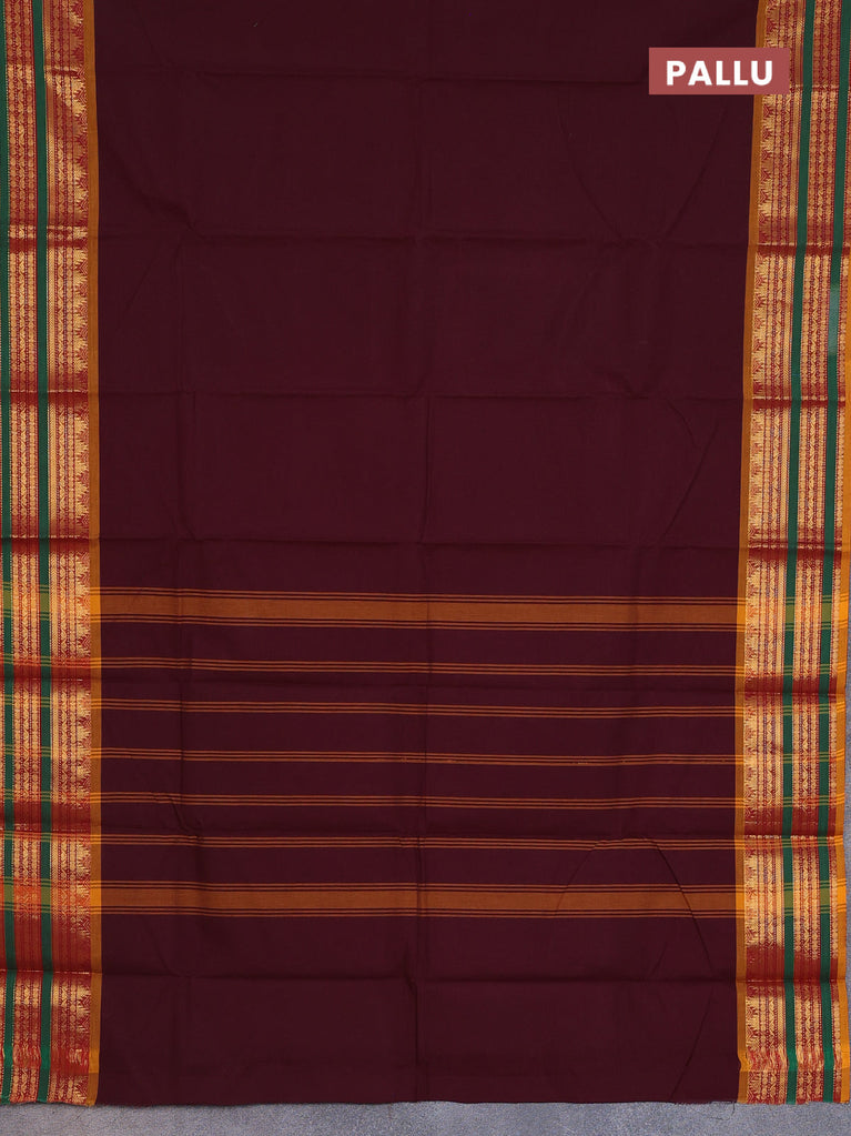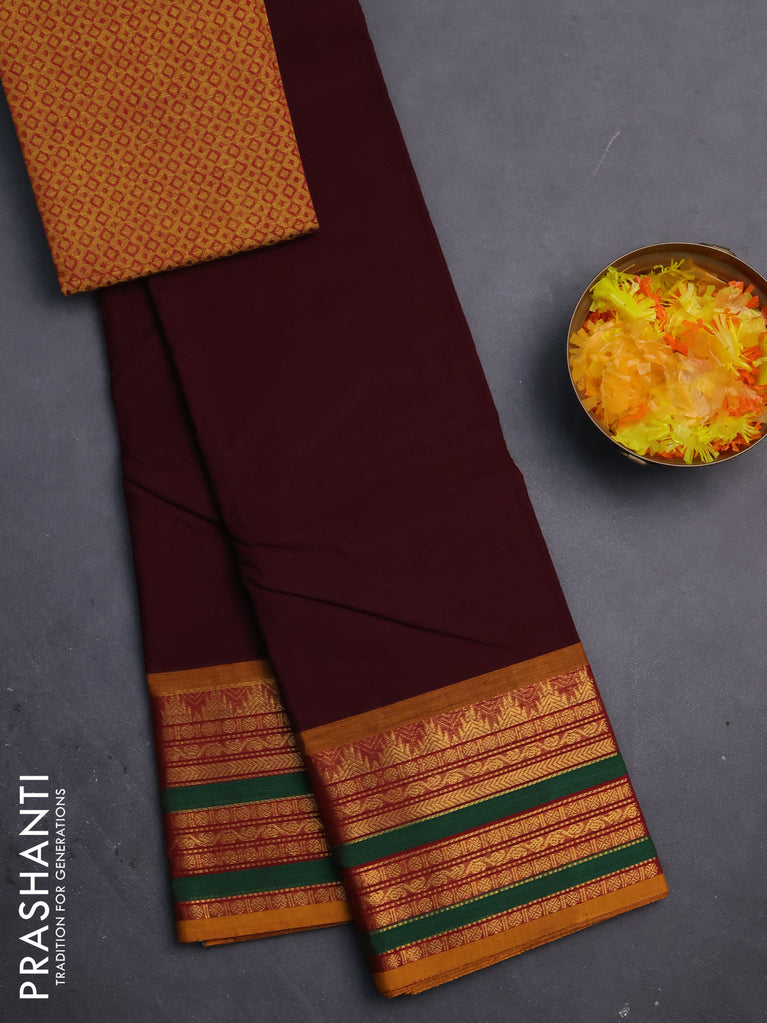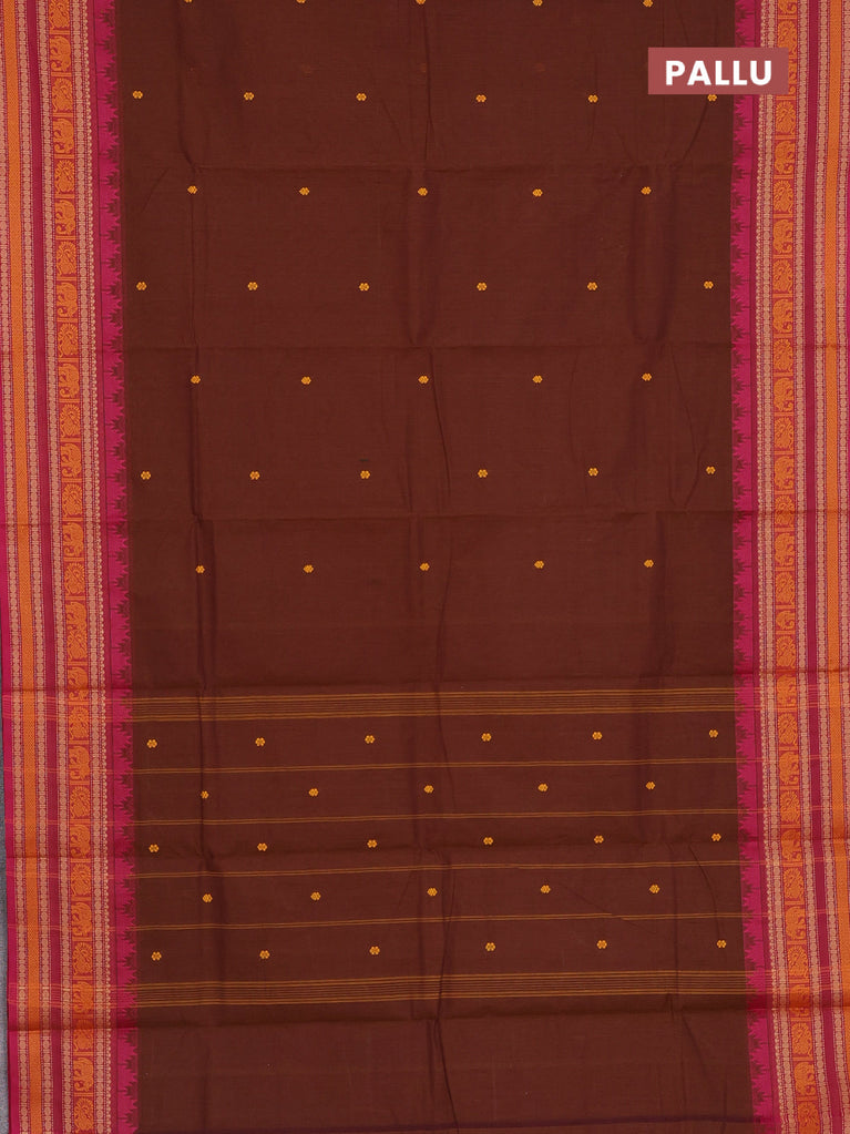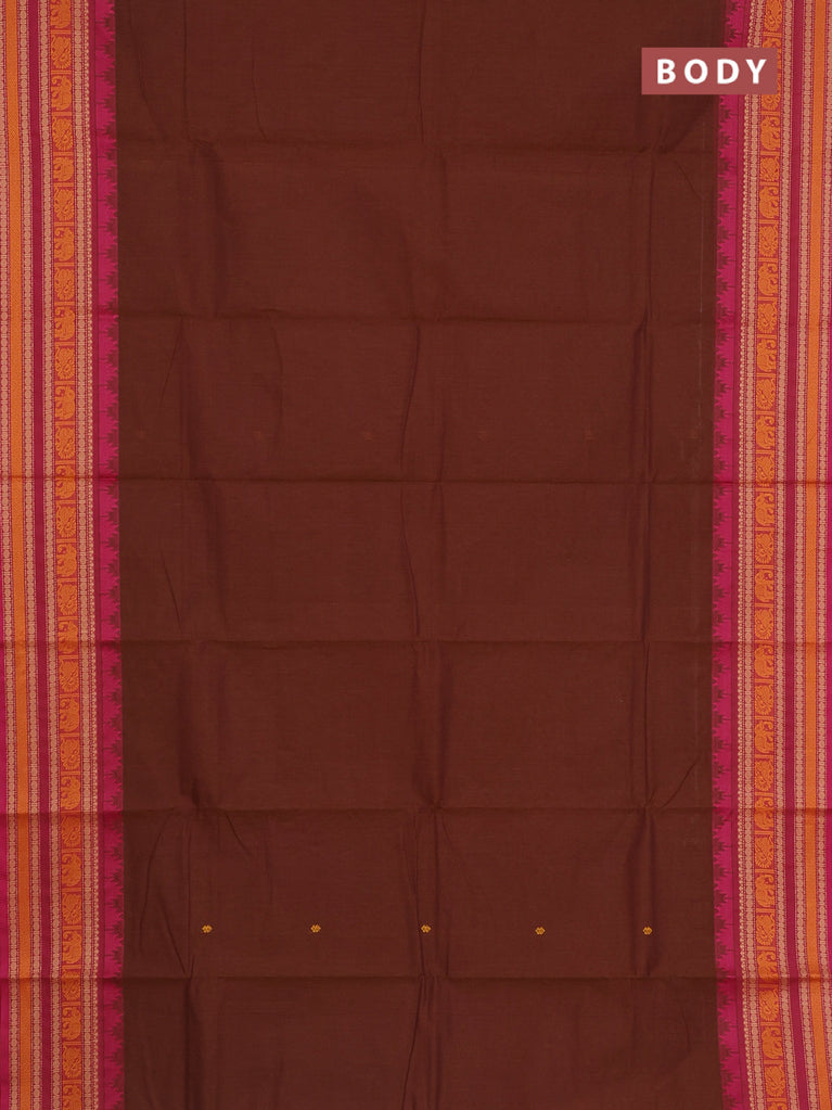 Chettinad cotton saree brown and maroon with thread woven buttas and rattapet zari woven border