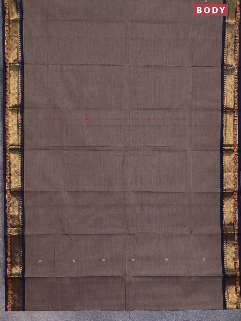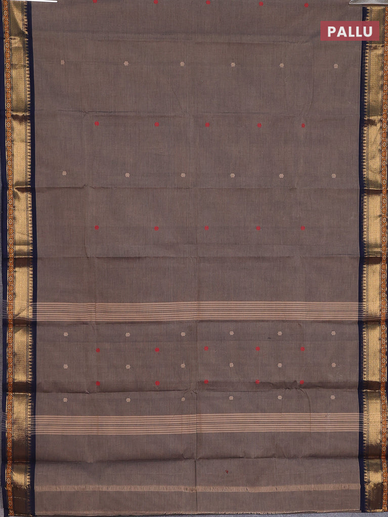 Chettinad cotton saree chikku shade and dark navy blue with thread woven buttas and zari woven border