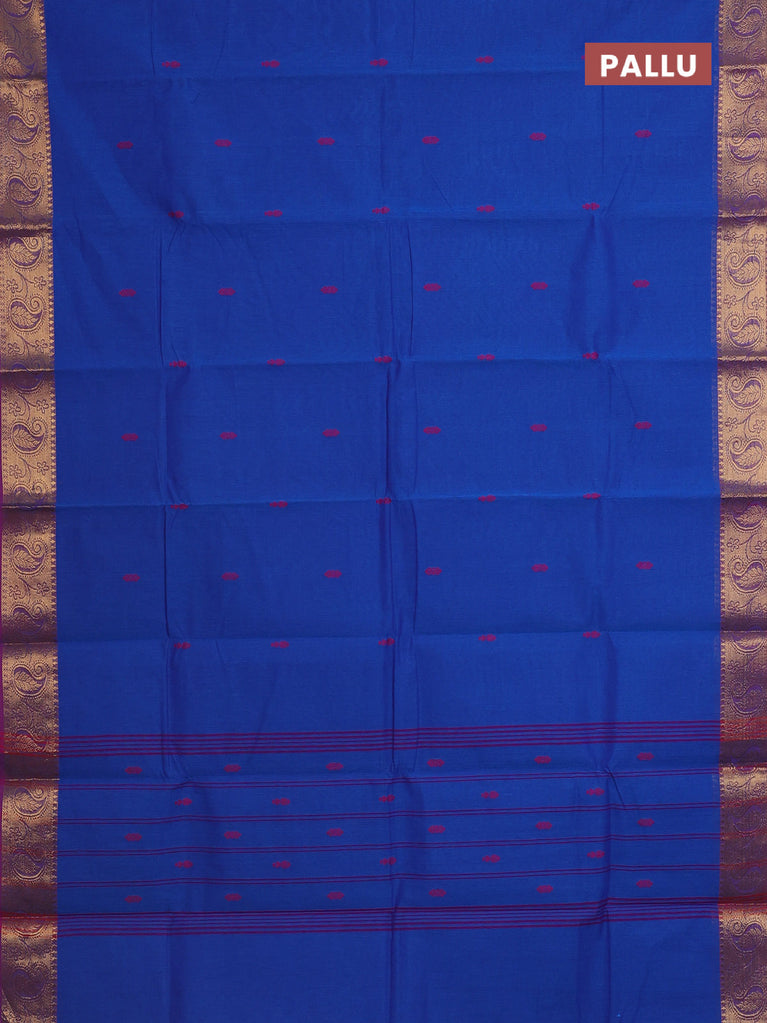 Chettinad cotton saree cs blue and drak pink with thread woven buttas and zari woven border