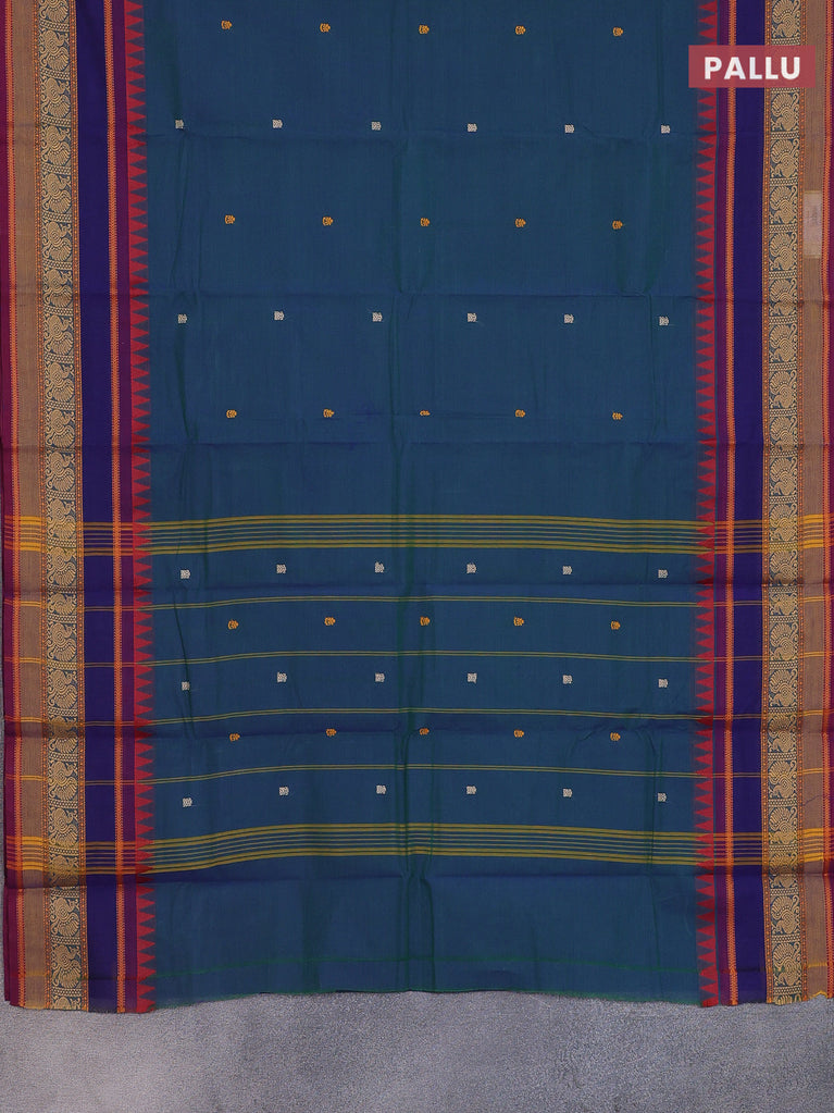 Chettinad cotton saree dark peacock blue and maroon with thread woven buttas and thread & zari woven border