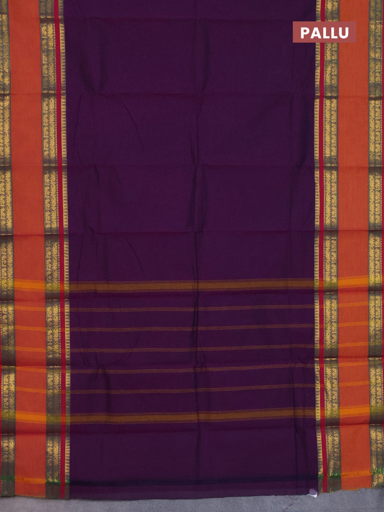 Chettinad cotton saree deep voilet and purple with thread woven buttas and rattapet zari woven border