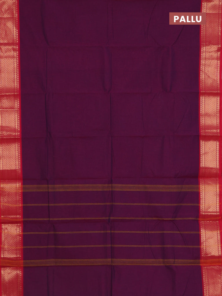 Chettinad cotton saree deep jamun shade and red with thread woven buttas and zari woven border