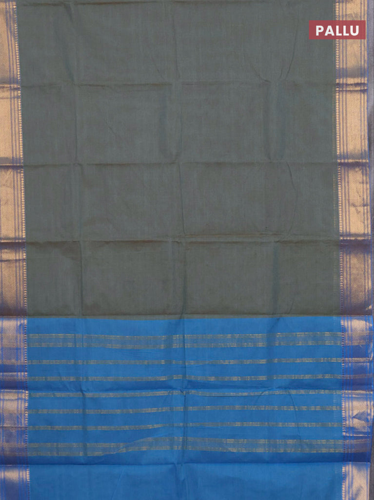 Chettinad cotton saree dual shade of blue and cs blue with allover small checked pattern and zari woven border