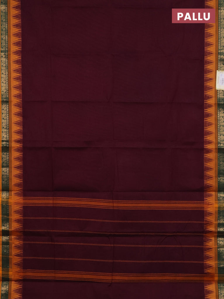 Chettinad cotton saree deep maroon and green with plain body and thread woven border